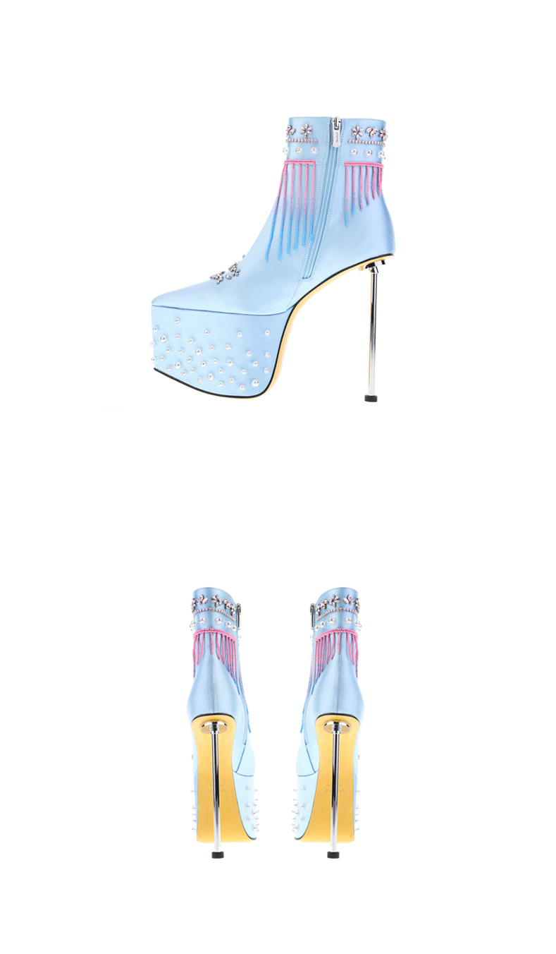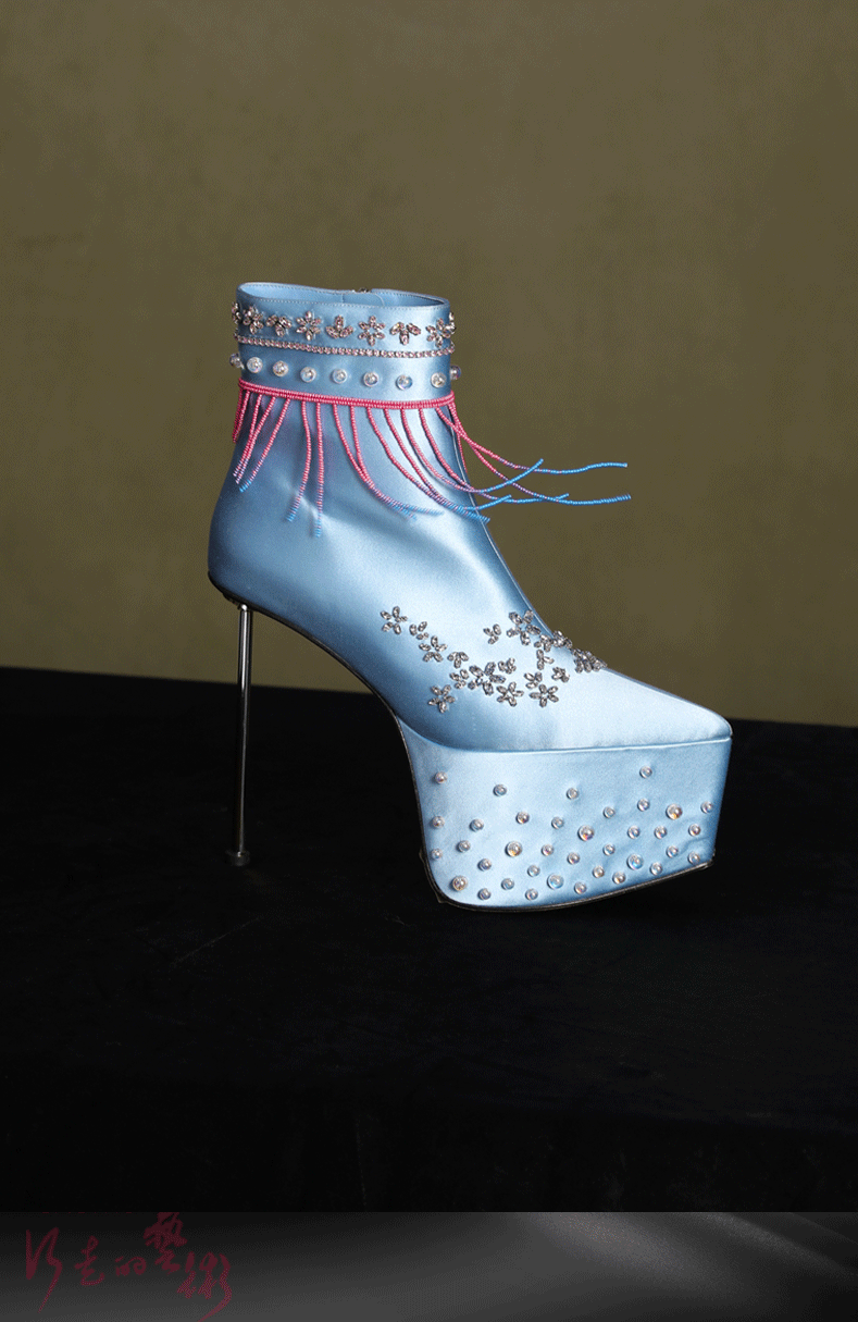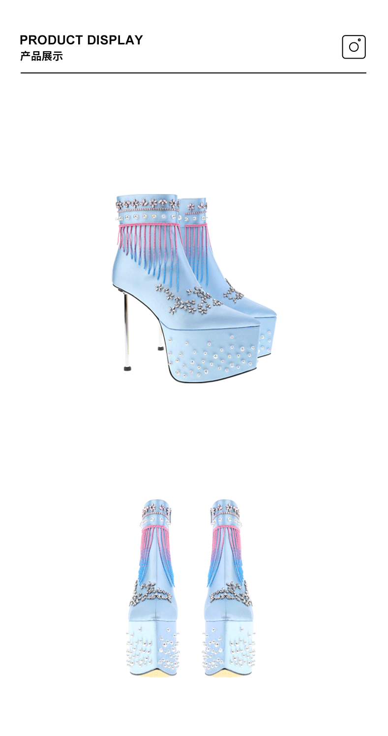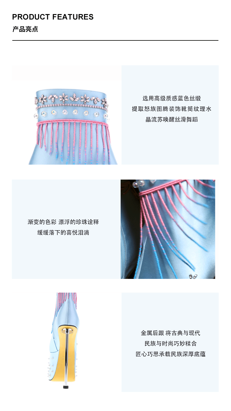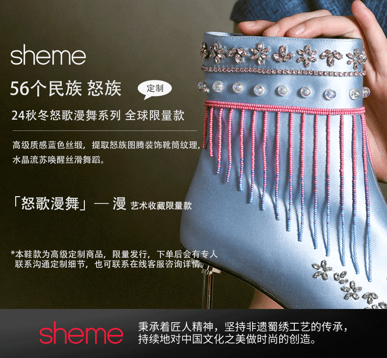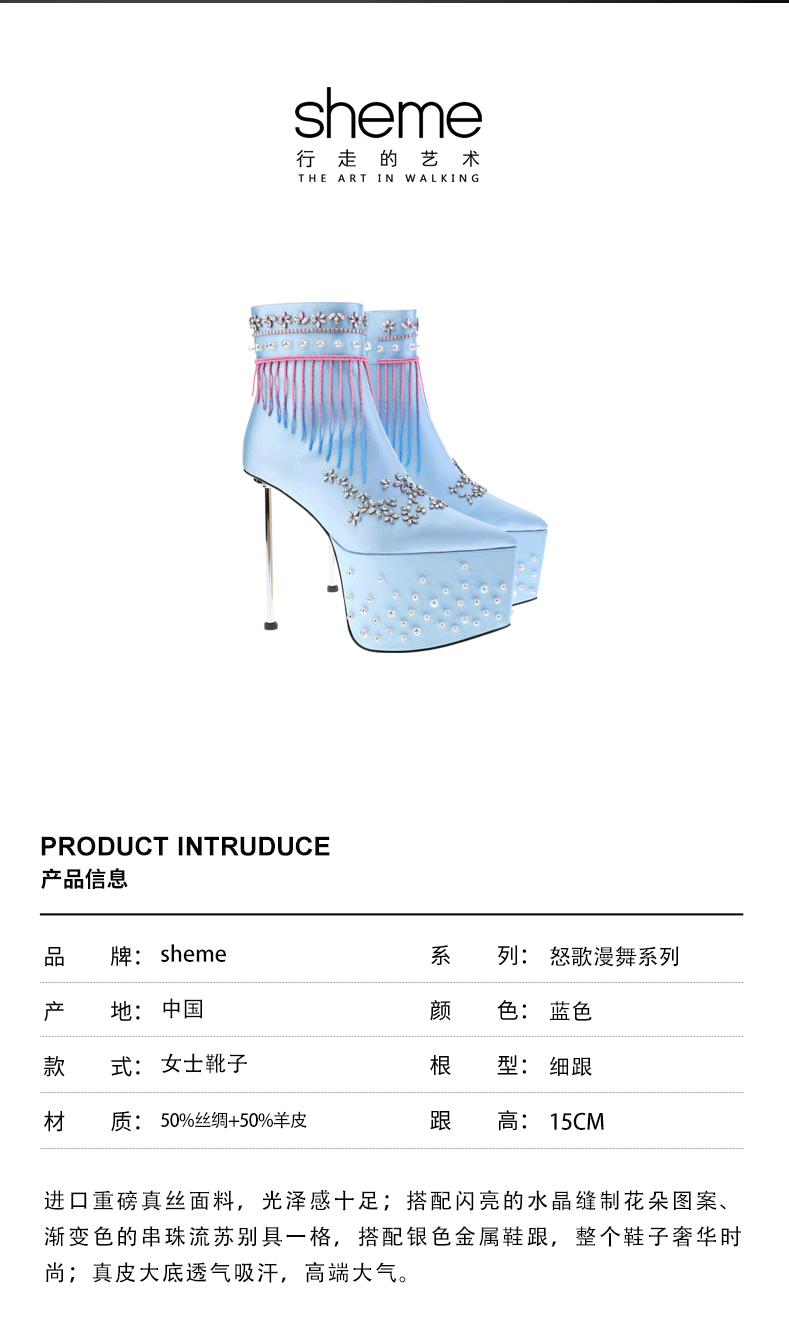 sheme怒歌漫舞系列进口丝绸水晶花朵渐变流苏金属跟新中式女士短靴可定制