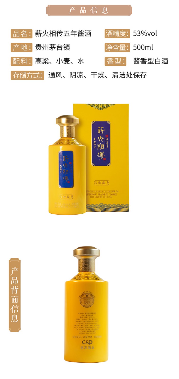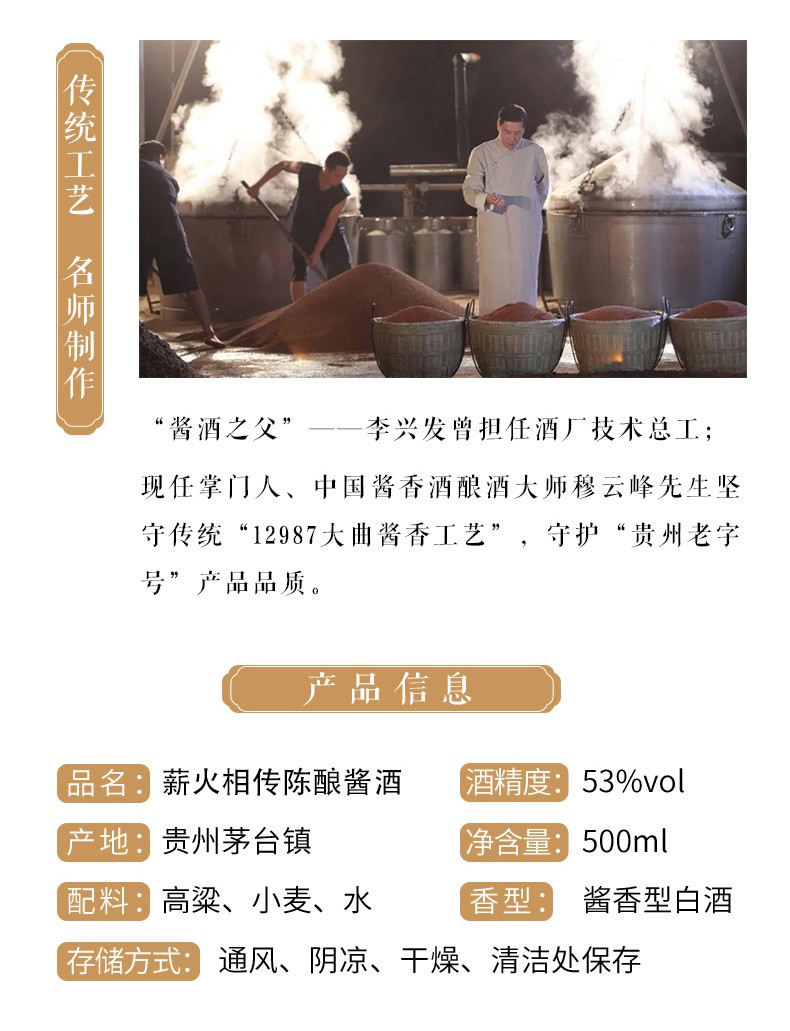 建发酒业 薪火相传陈酿 典藏 御藏酱酒 53度 高度白酒 500ml 贵州茅台镇 酱香型 单瓶 薪火相传陈酿