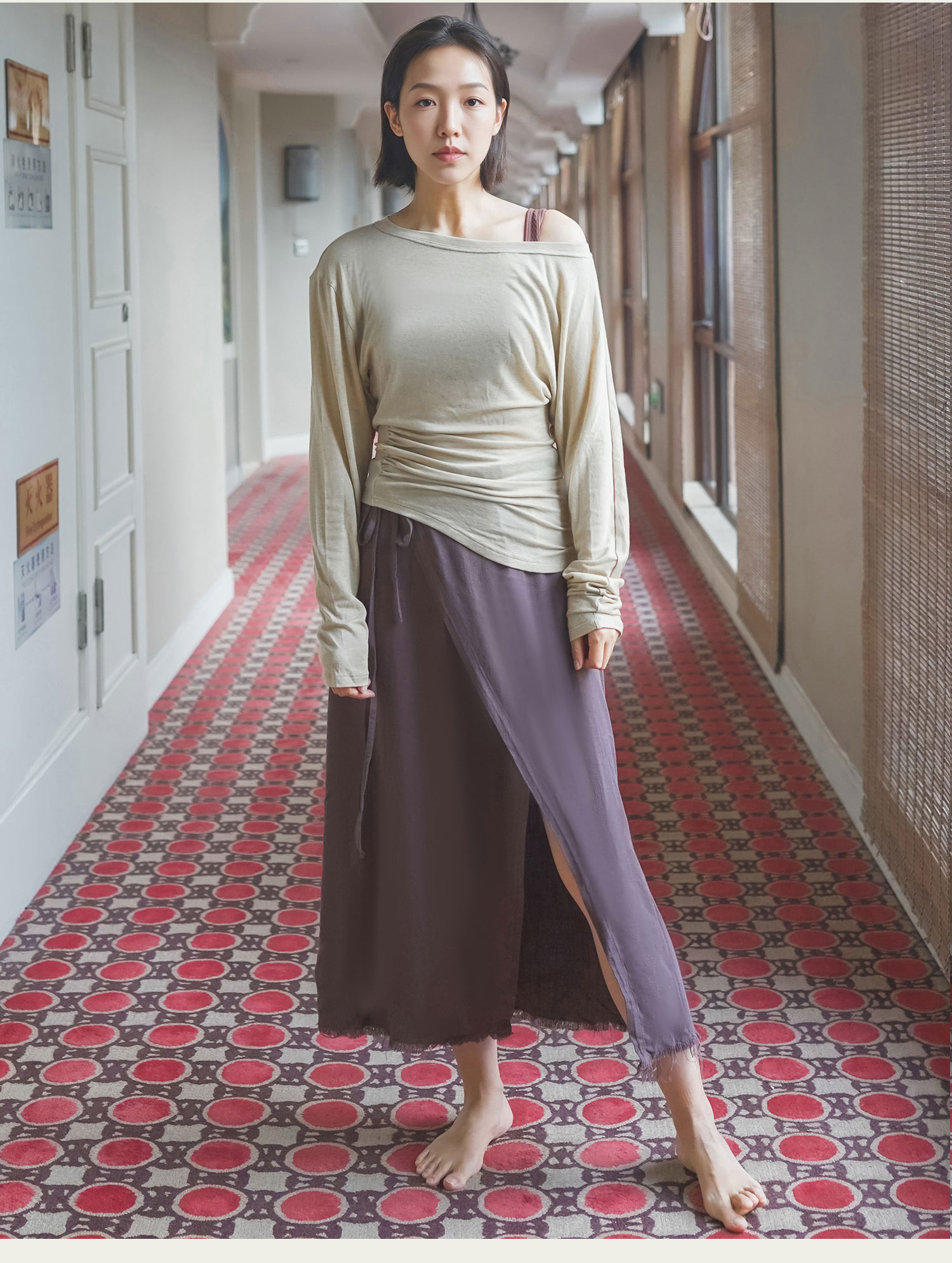 AddOne+1 瑜伽时尚外搭斜肩长袖
