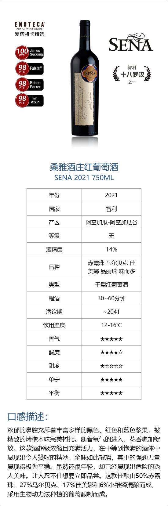 【联系客服询问底价】桑雅酒庄红葡萄酒 2021 750ml