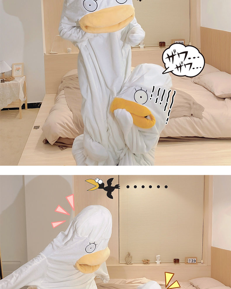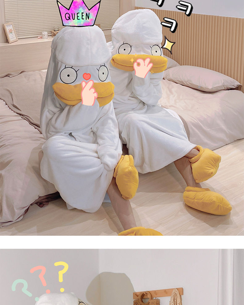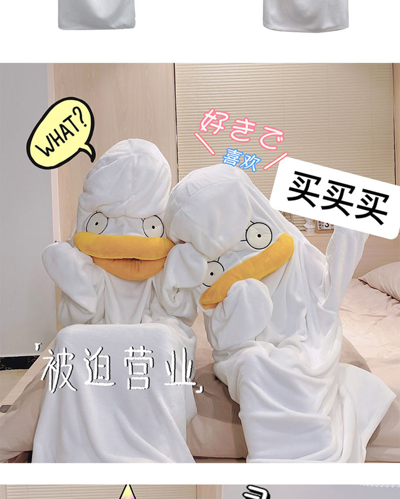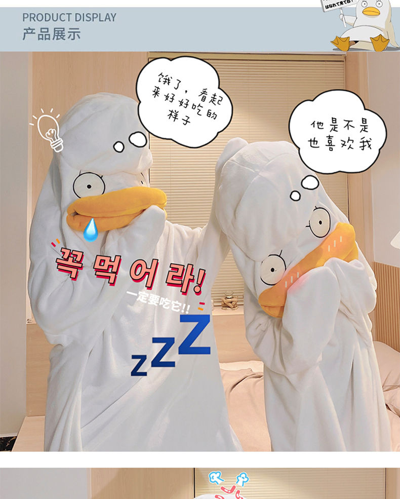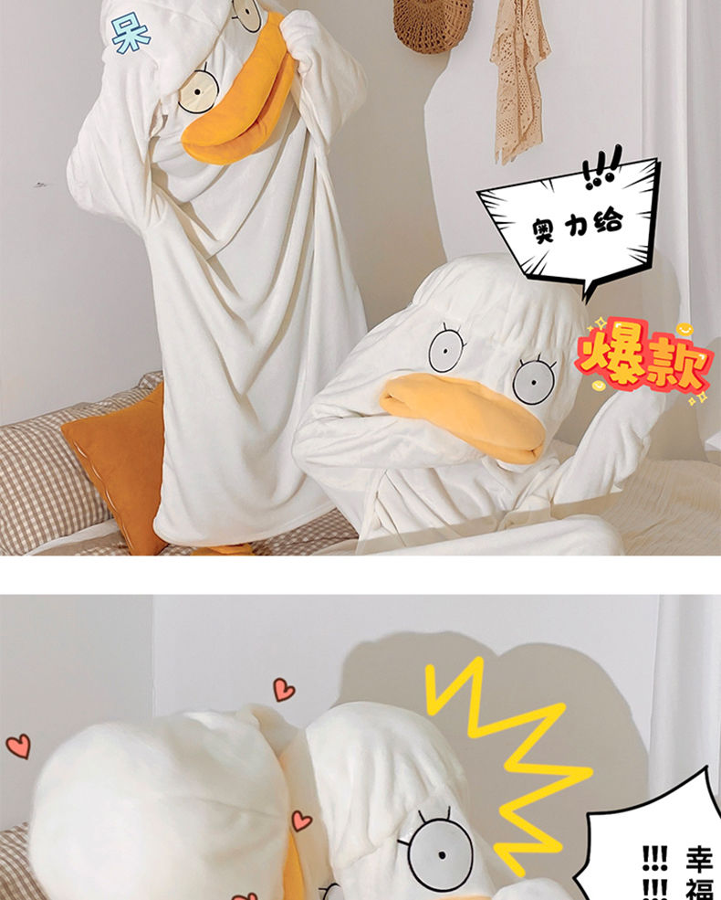 可爱鸭子睡衣秋冬搞怪男女款情侣睡袋法兰绒睡袍加厚睡裙