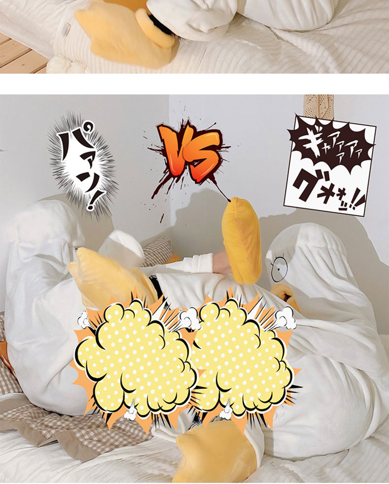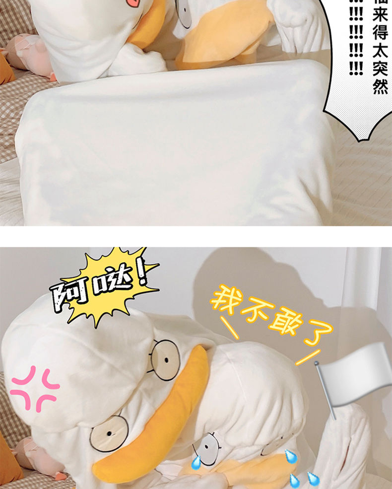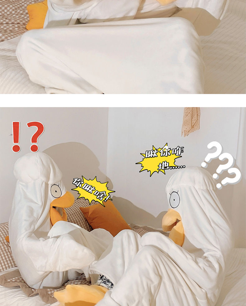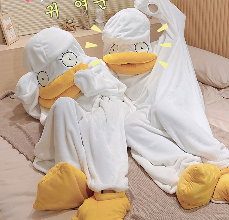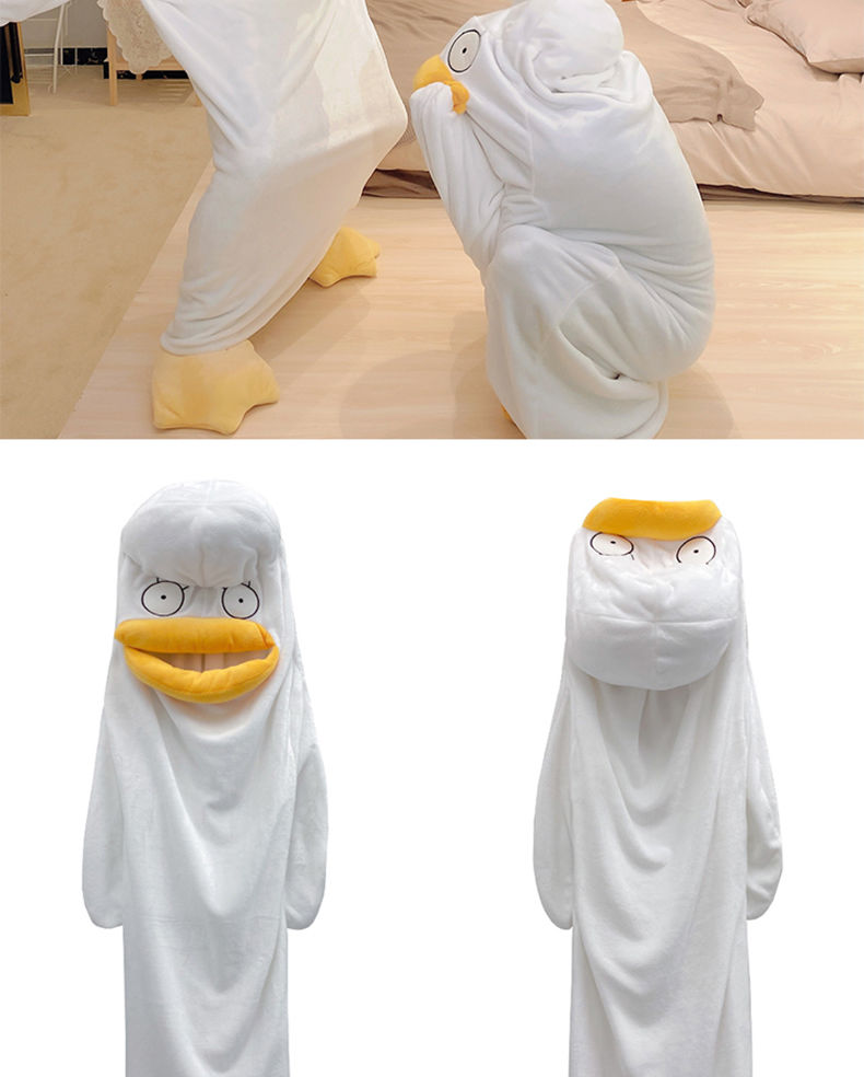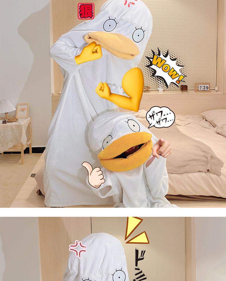 可爱鸭子睡衣秋冬搞怪男女款情侣睡袋法兰绒睡袍加厚睡裙
