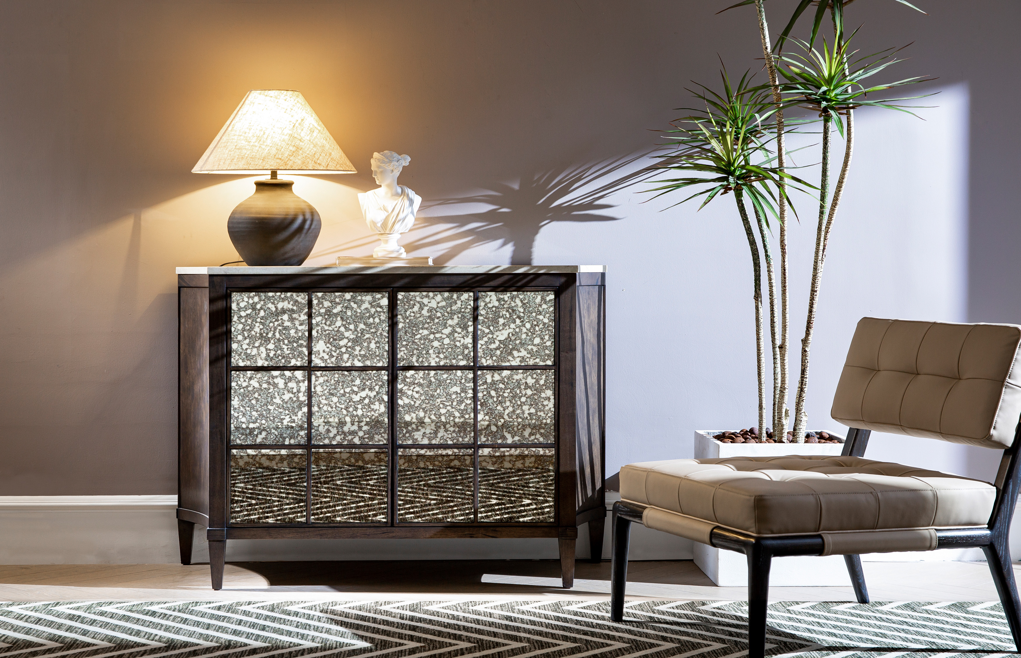 主材:实木+山纹艳阳花薄片+仿古镜