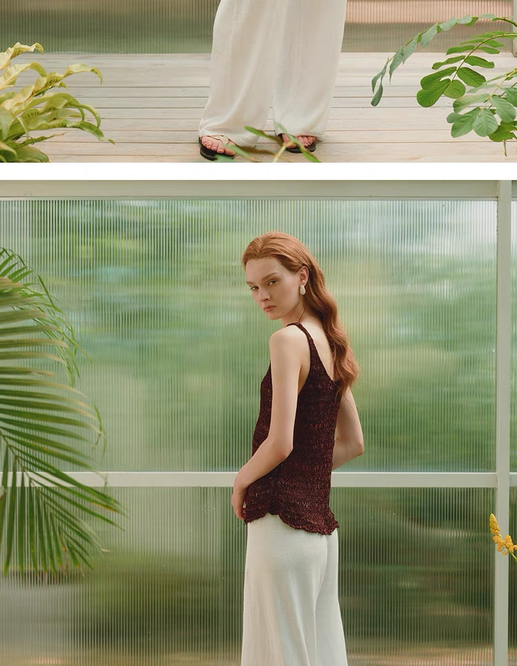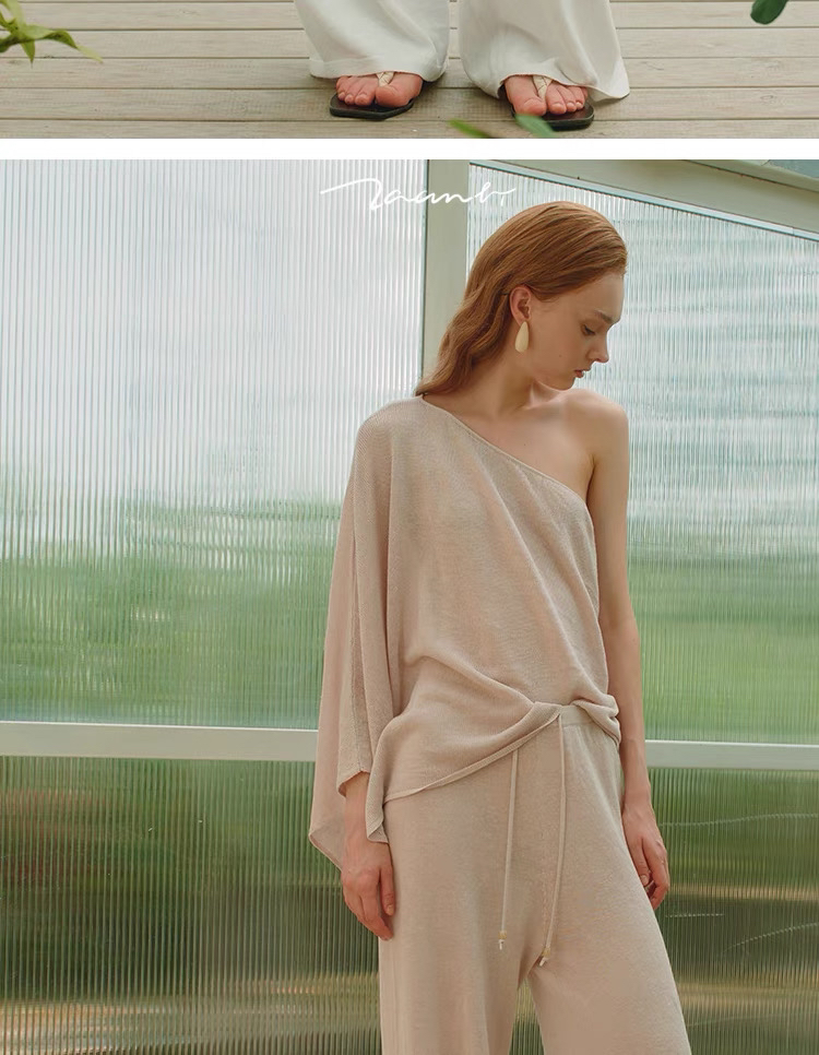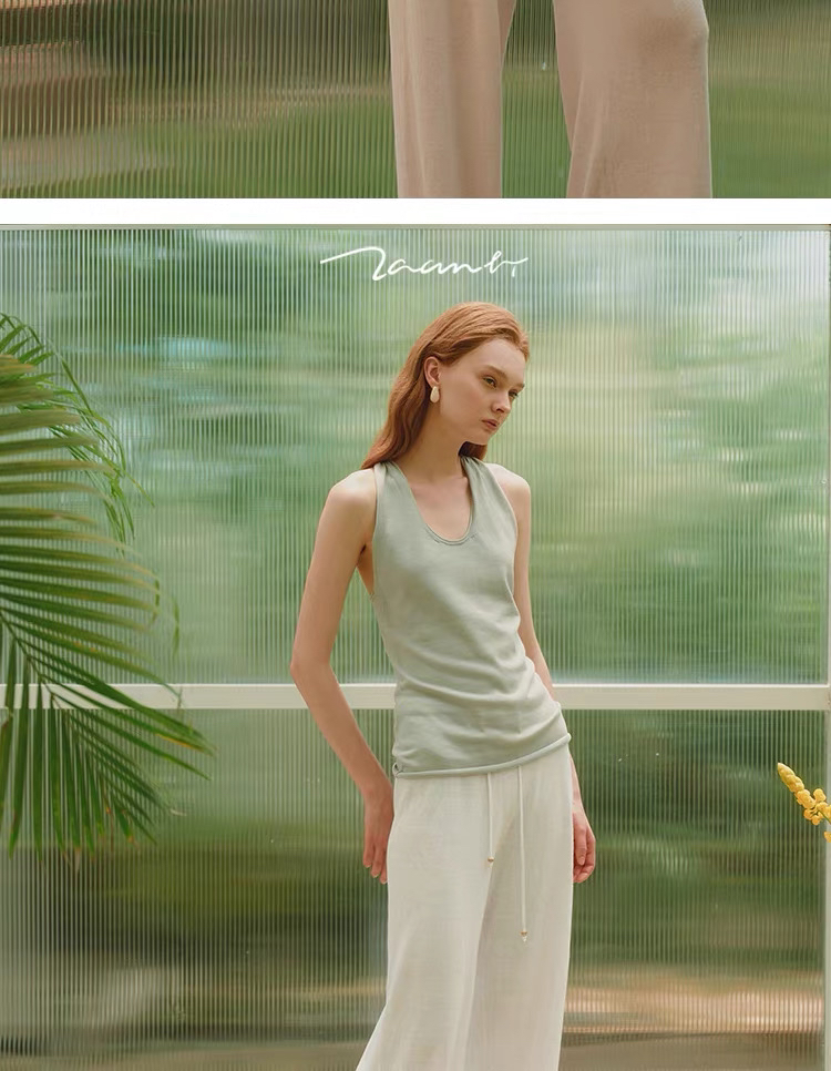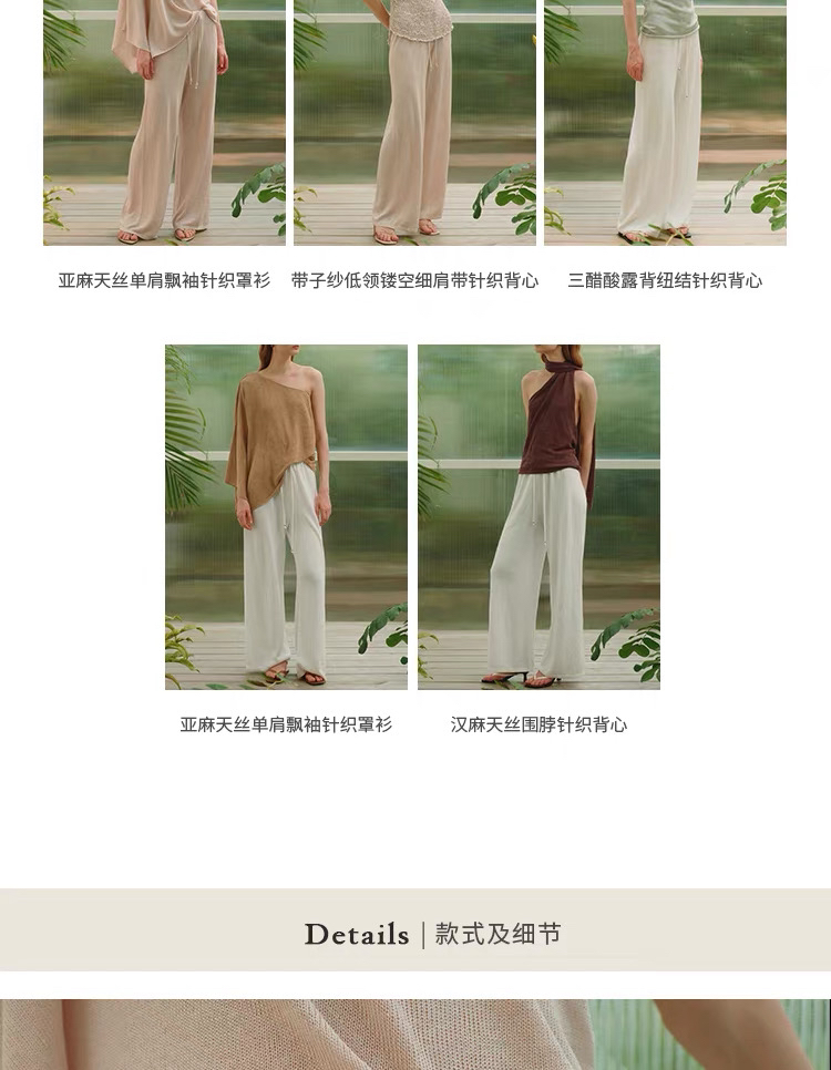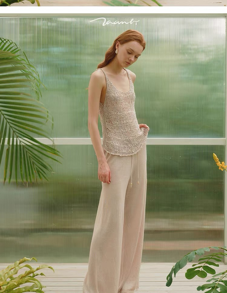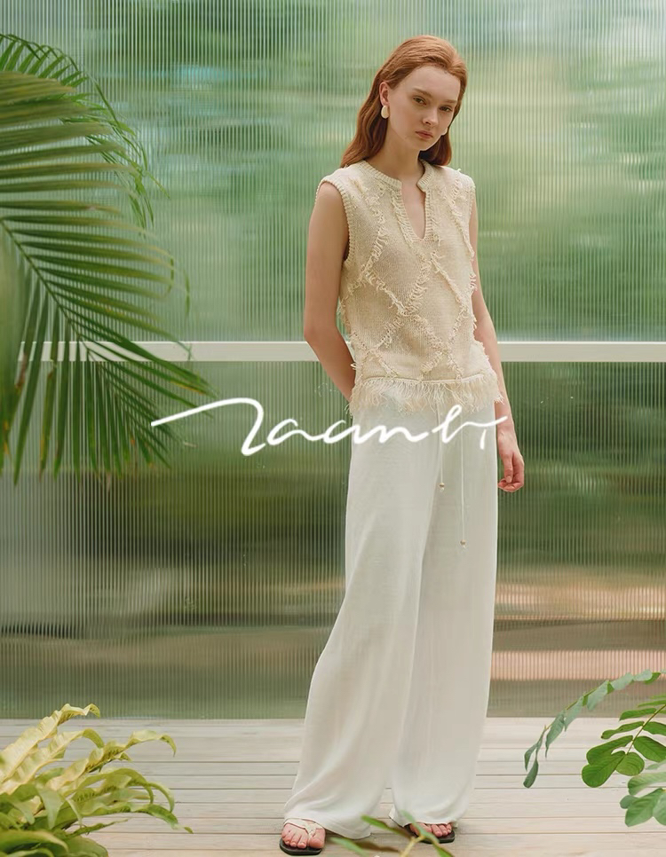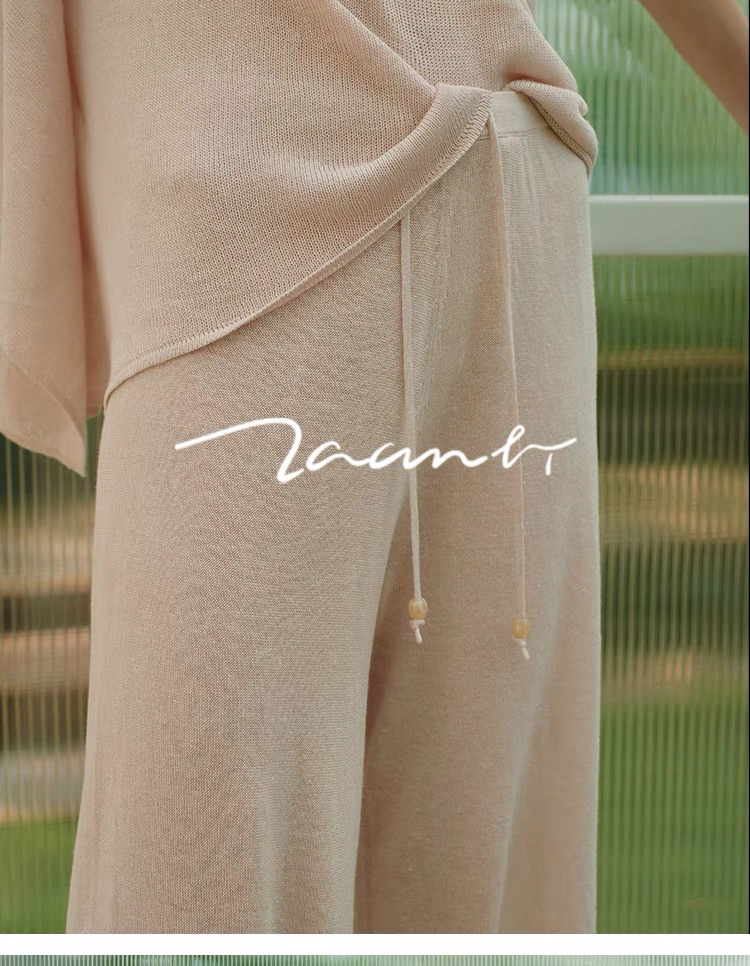 ZAANLI|ZNSS25028 汉麻天丝系带针织长裤 [ 白 / 杏 ]