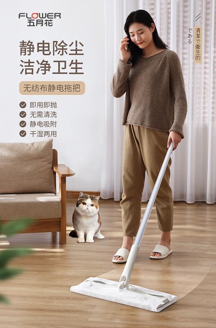 五月花静电除尘纸拖把一次性吸尘免洗擦地拖布家用拖地地板湿纸巾