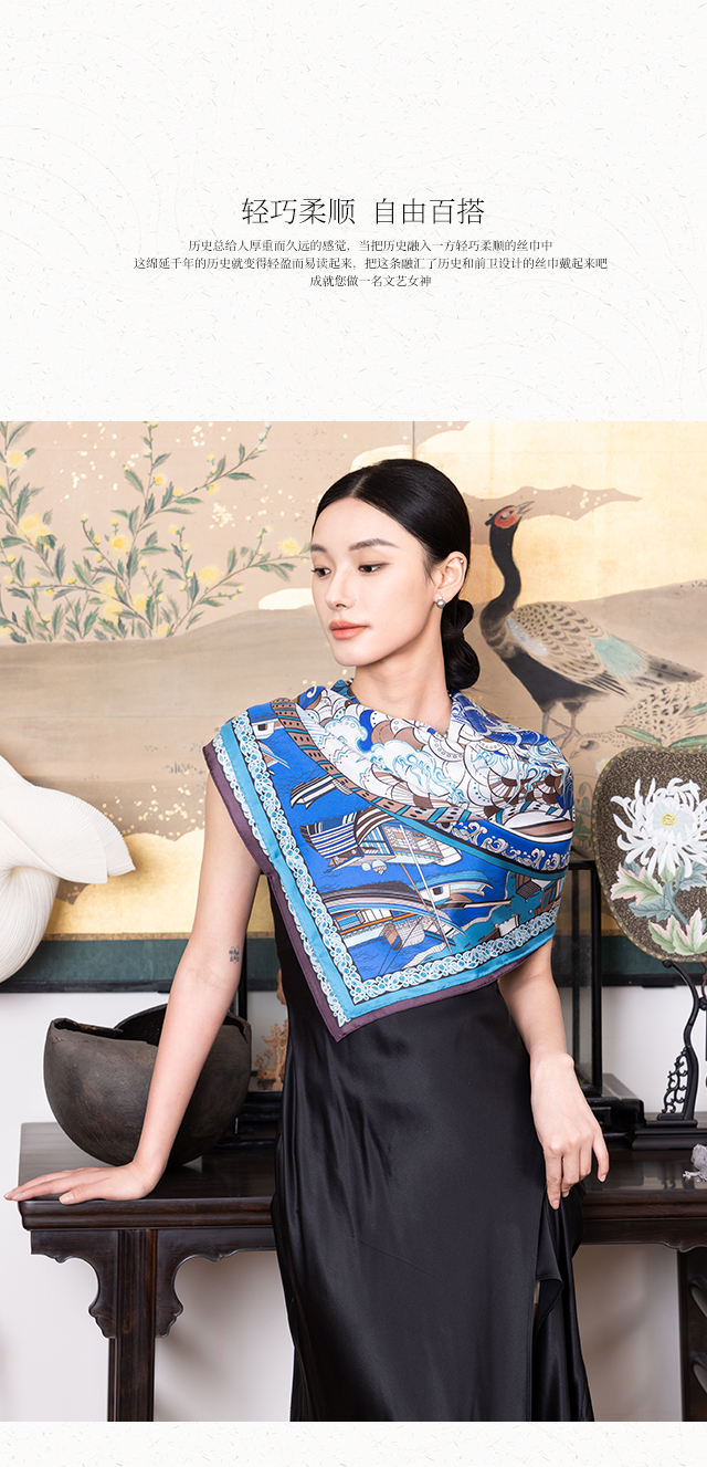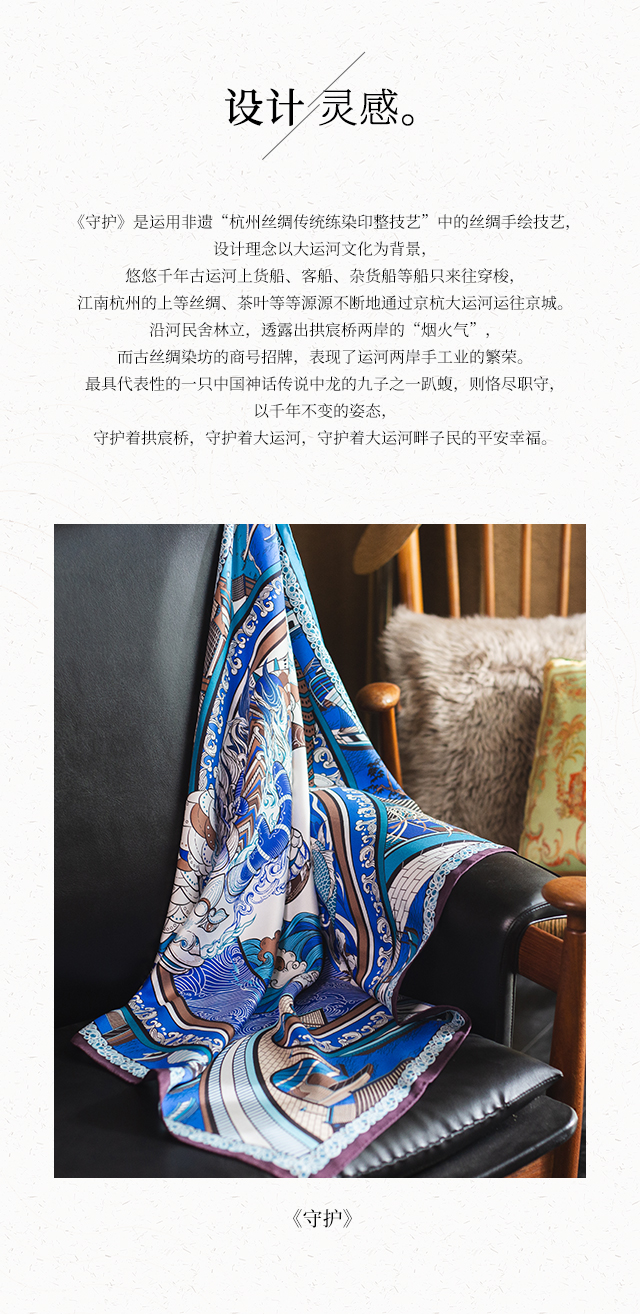 放心消费月 喜得宝文创丝巾《守.护》杭州运河拱宸桥趴蝮 杭州丝绸100%桑蚕丝斜纹绸