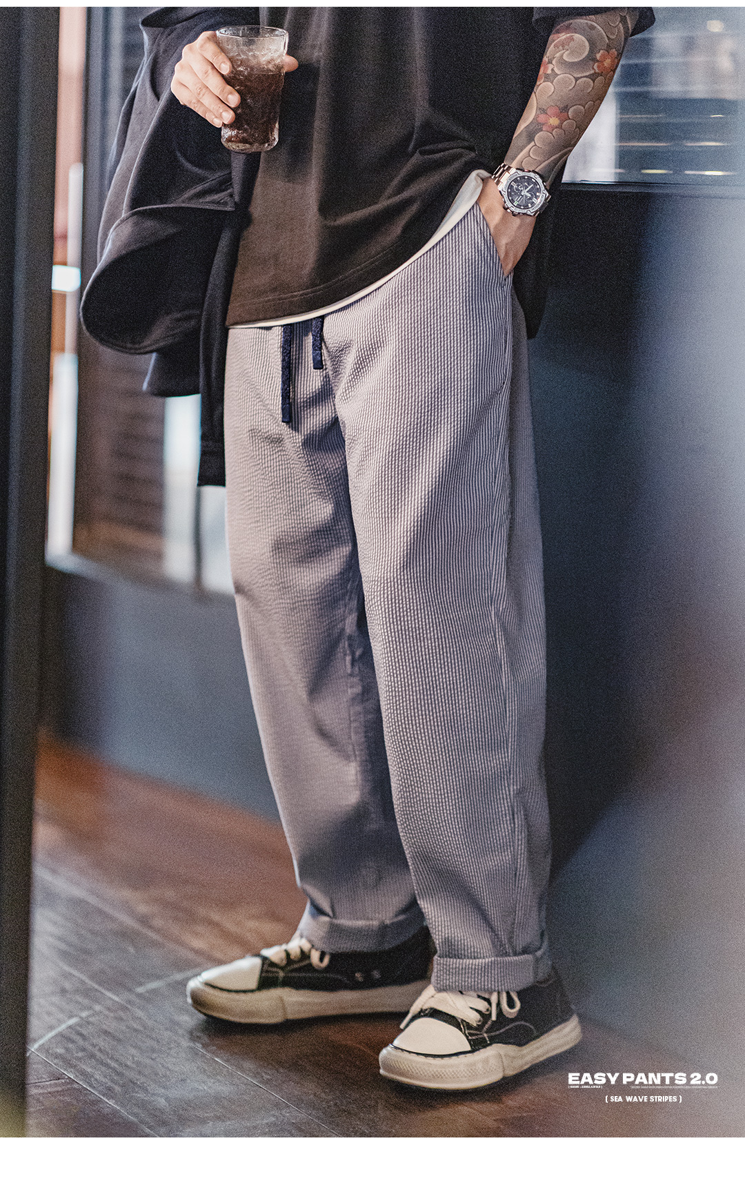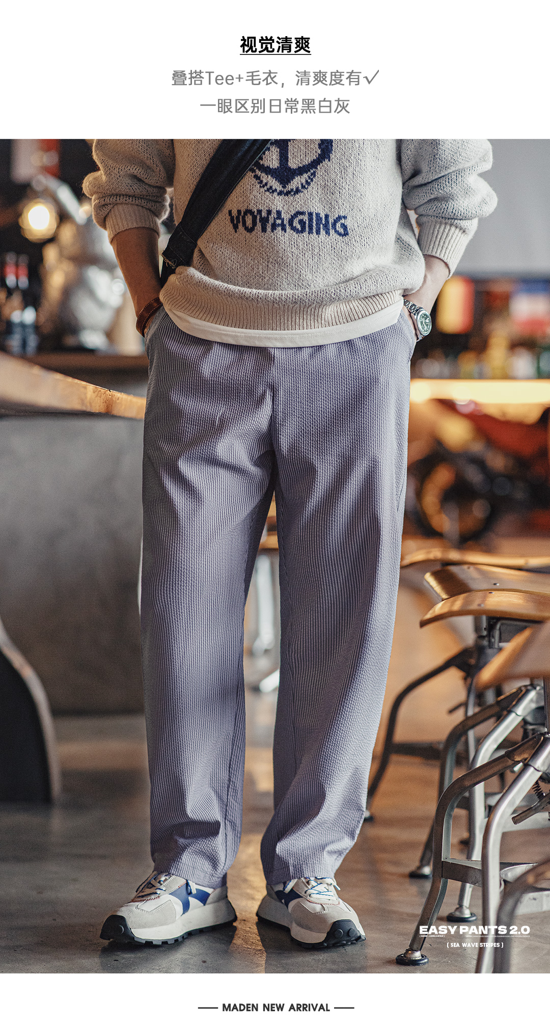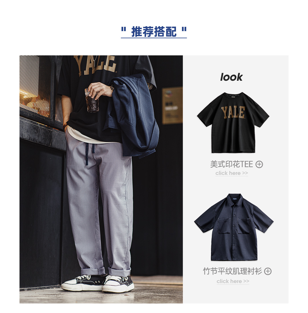 工装优选美式Easypants泡泡纱条纹休闲裤松紧腰免烫直筒长裤男秋