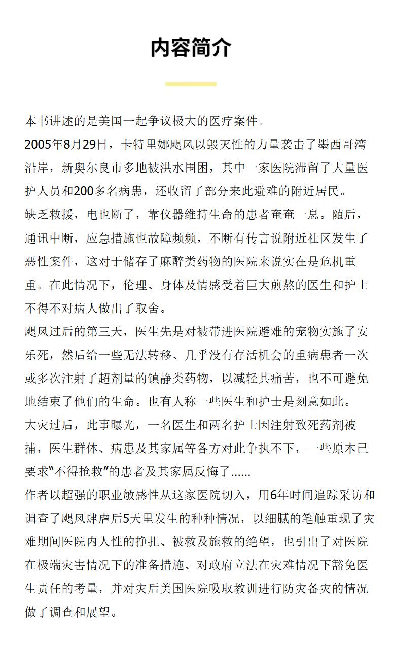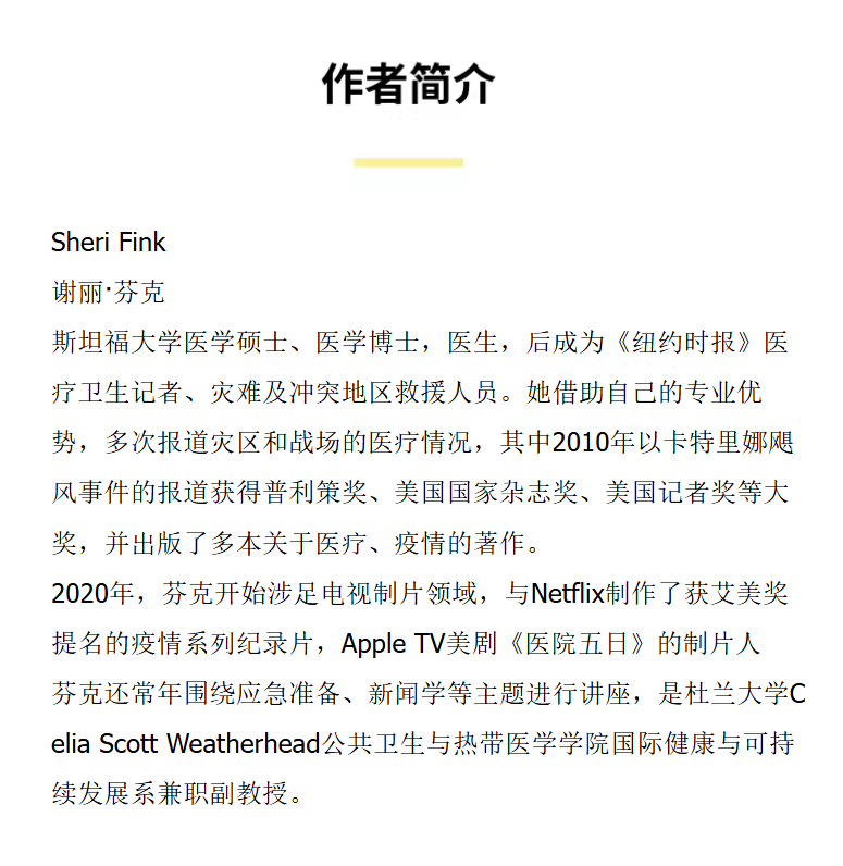 灾后五日 译文纪实 [美]谢丽·芬克 著 徐芳芳 译 美剧《医院五日》原著 普利策新闻奖 政府应对 救援系统【上海译文】