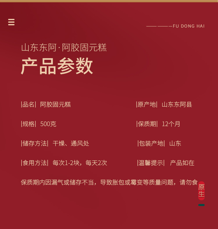 【微信专享优惠】拍1发2 冬季滋补必备 阿胶固元糕500克 胶香软糯懂你所需 守护你的美