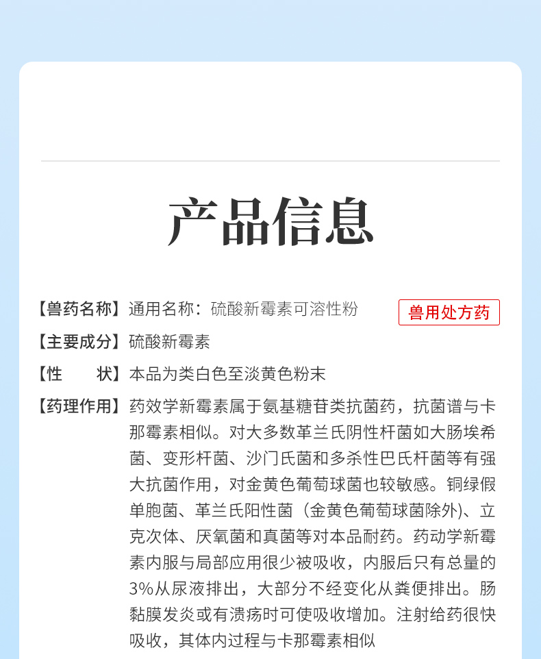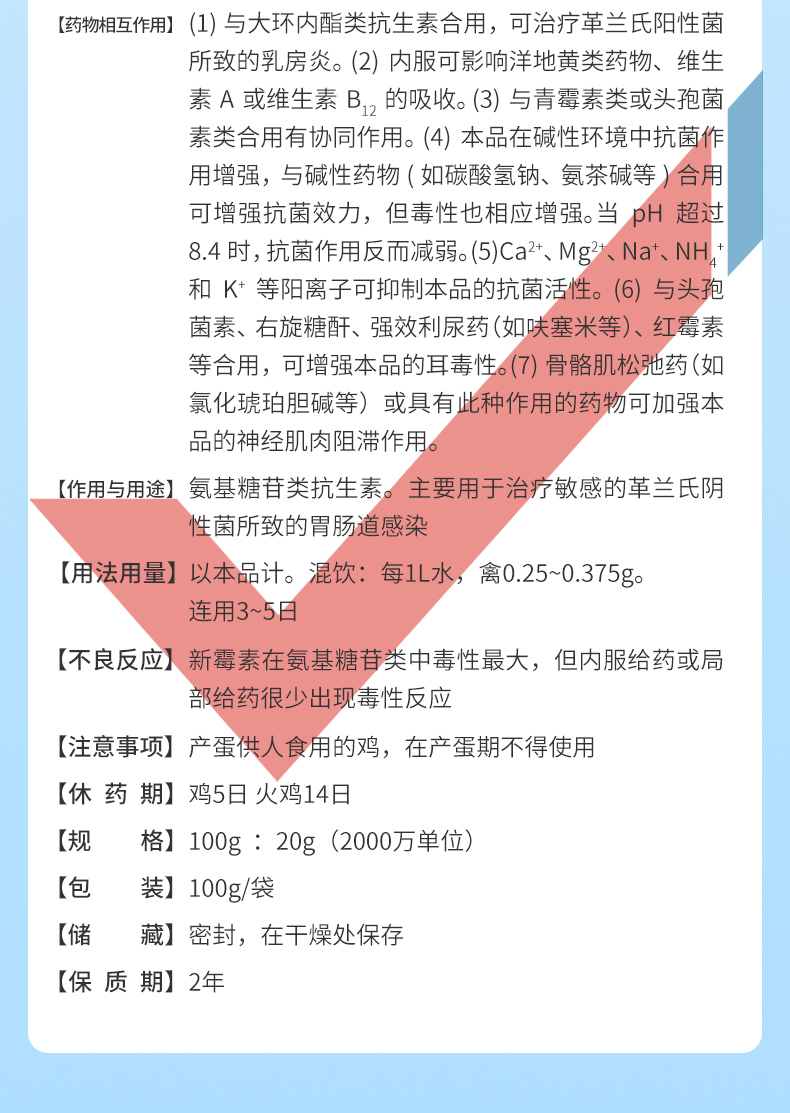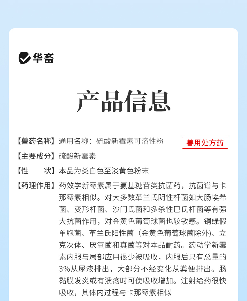 华畜20%硫酸新霉素可溶性粉100g 主治肠炎痢疾禽畜通用