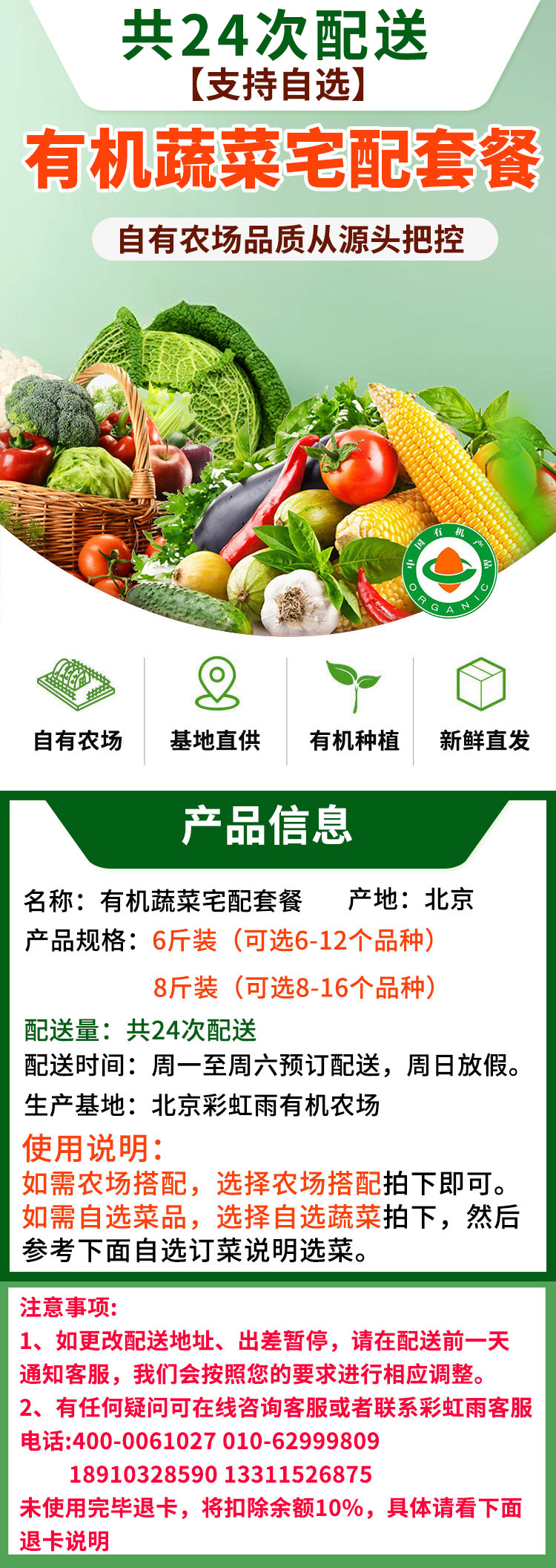 有机蔬菜宅配套餐6斤/8斤*24次可自选蔬菜欧盟认证基地直发包邮