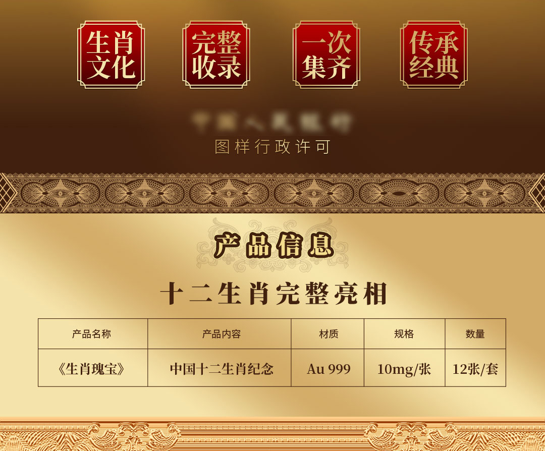 生肖瑰宝-十二生肖纪念金券套装礼盒证书齐全