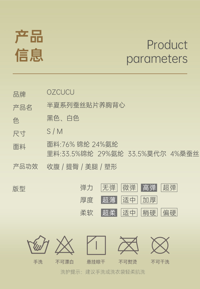 【品名】OZCUCU 蚕丝背心 轻盈贴肤 吸湿透气 【规格】黑色/白色 【尺码】S,M 【产地】澳大利亚 【发货包装】独立包装袋 【发货地】浙江 【发货快递】中通 【不发货区域】新疆,西藏,港澳台 【发货时效】48-72小时,周末节假日顺延 |
