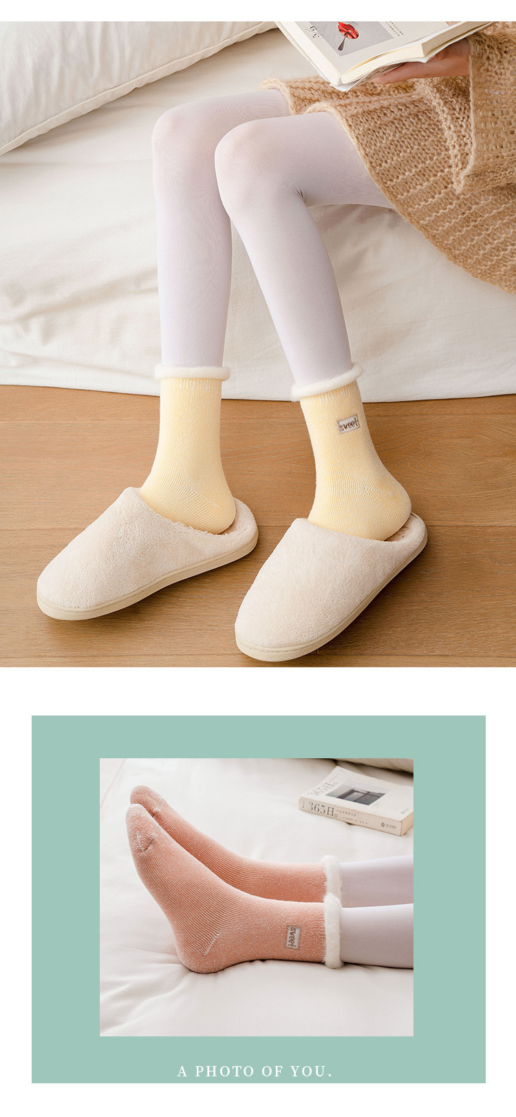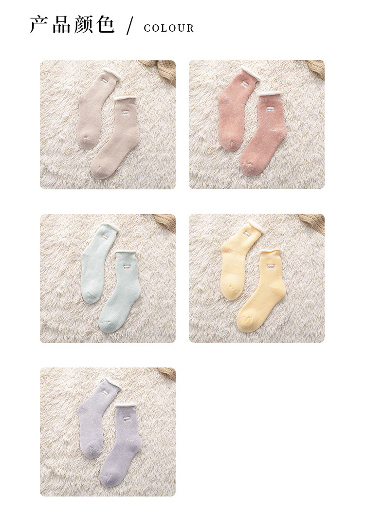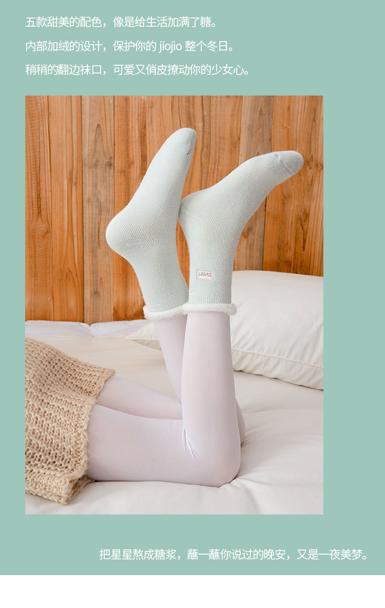 【3双装 温暖守护你的“jiojio”】冬季加厚卷边加绒刺绣雪地袜ins潮袜甜美少女袜纯色女袜中筒袜长袜子