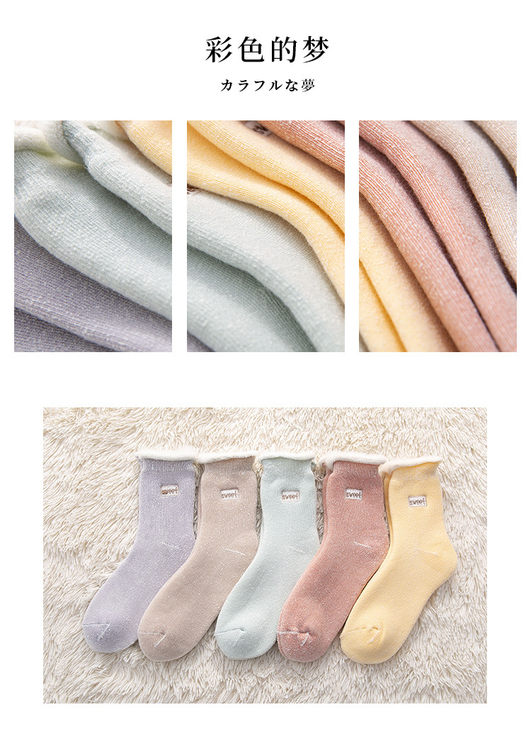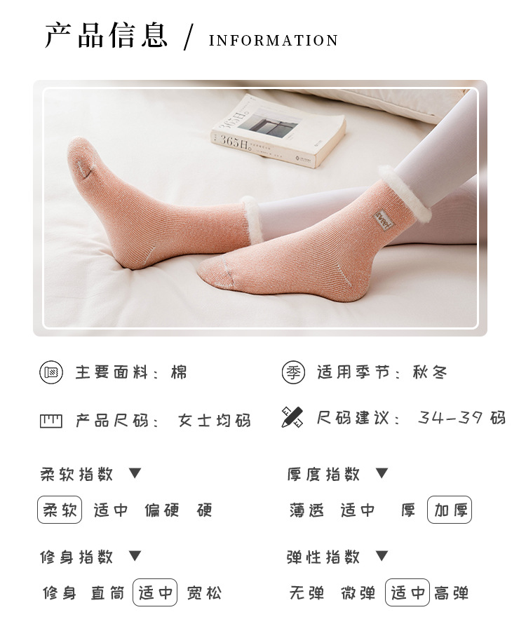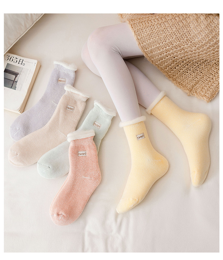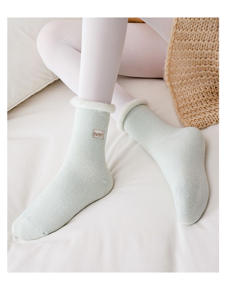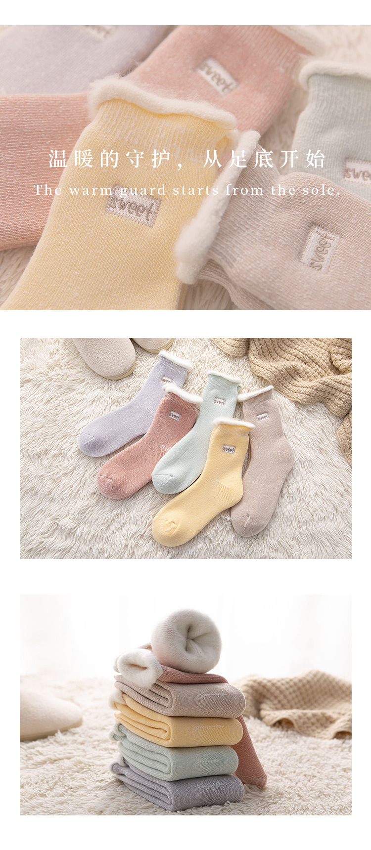 【3双装 温暖守护你的“jiojio”】冬季加厚卷边加绒刺绣雪地袜ins潮袜甜美少女袜纯色女袜中筒袜长袜子