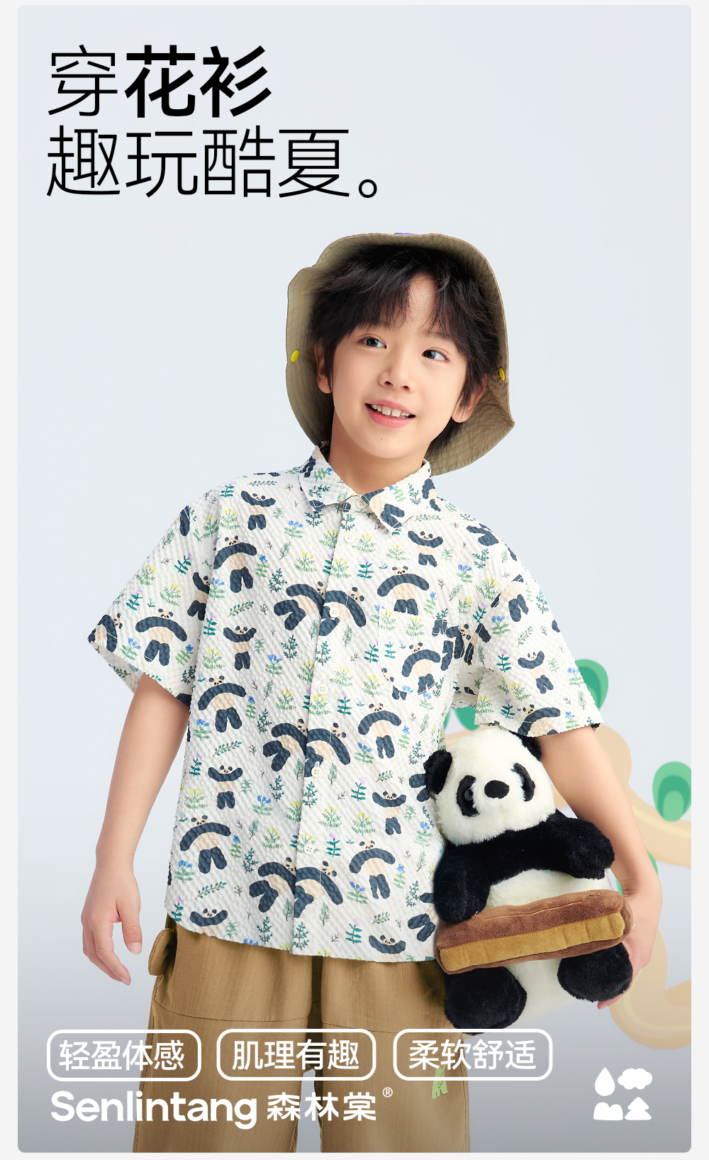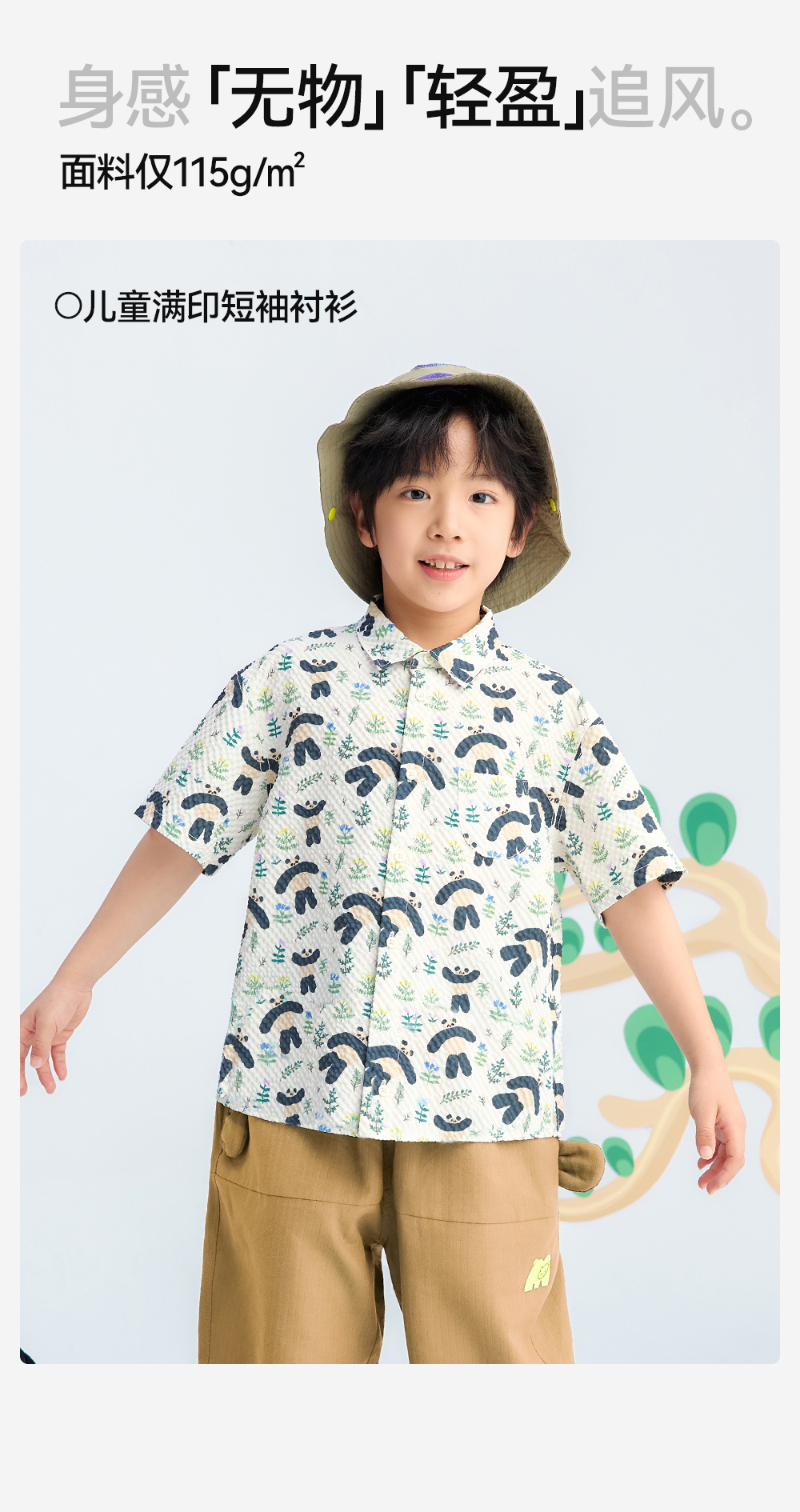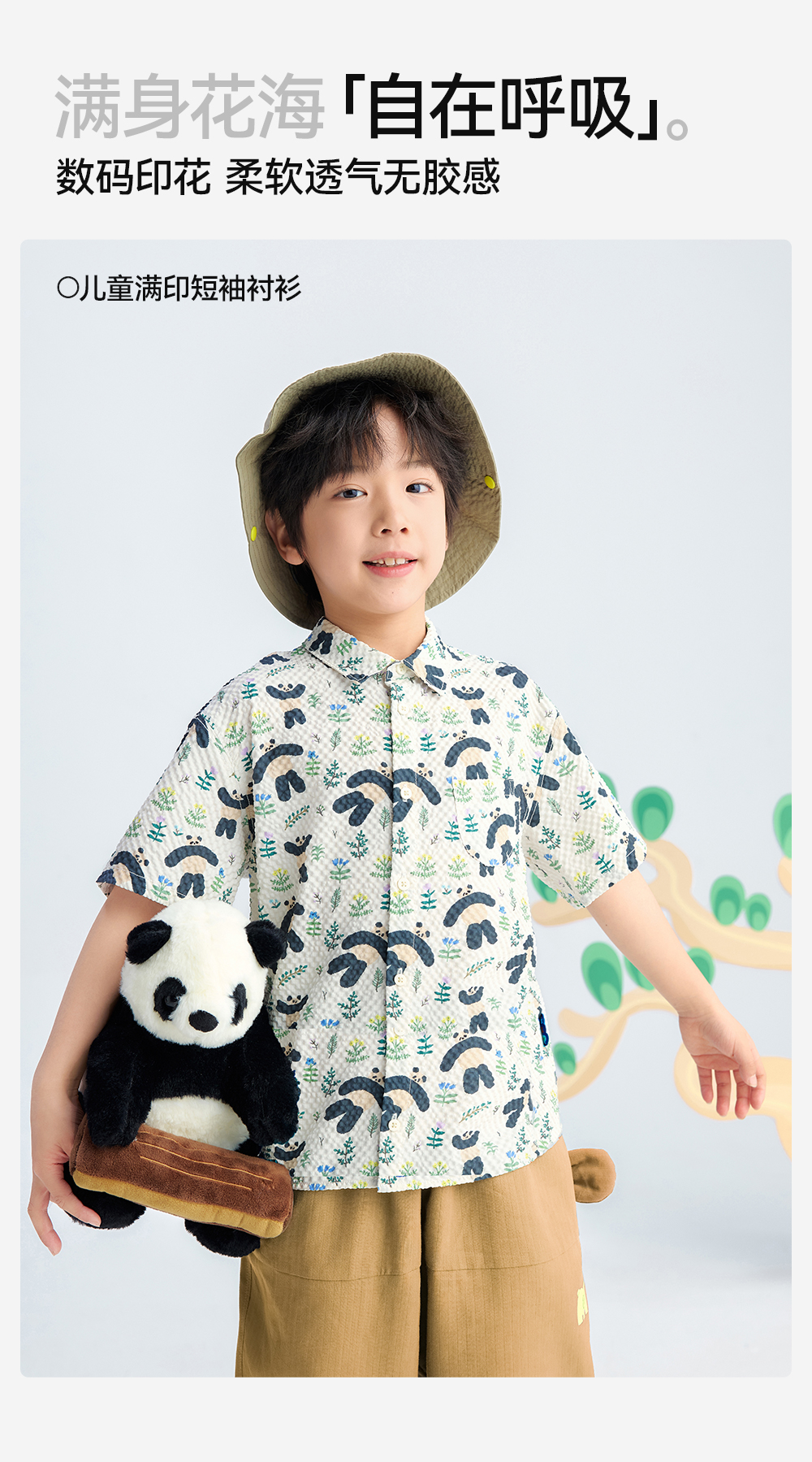 【儿童满印短袖衬衫】森林棠26夏款轻盈柔软卡通熊猫印花休闲衬衫40462236