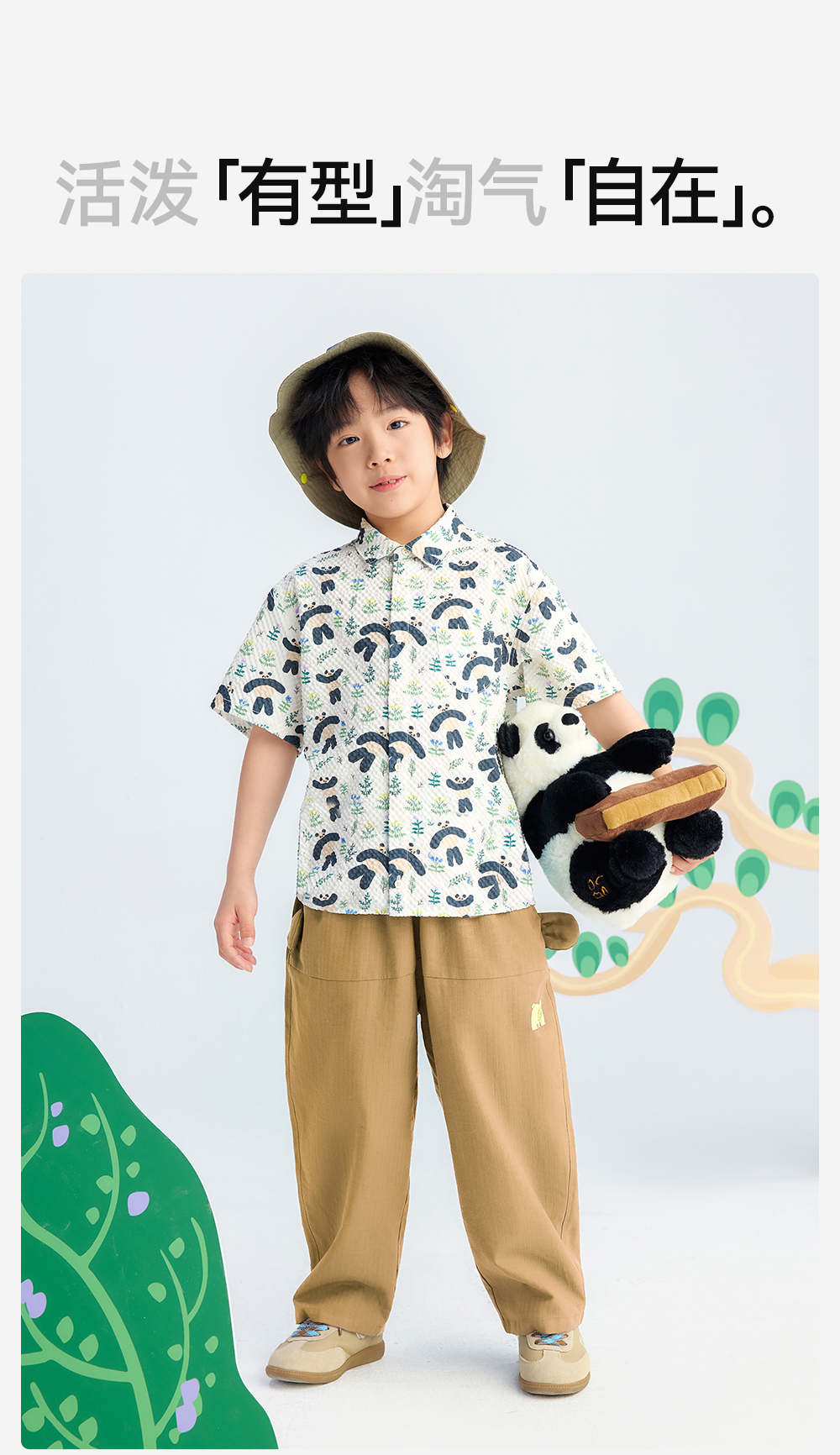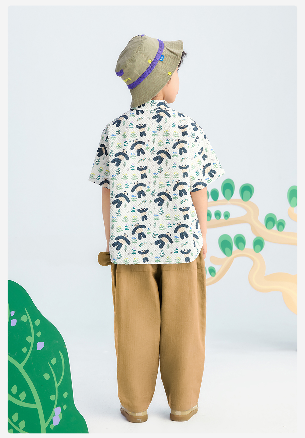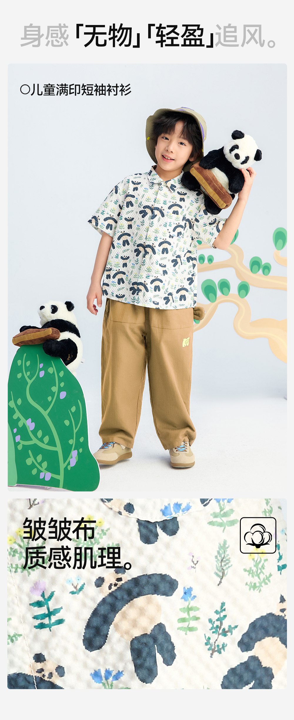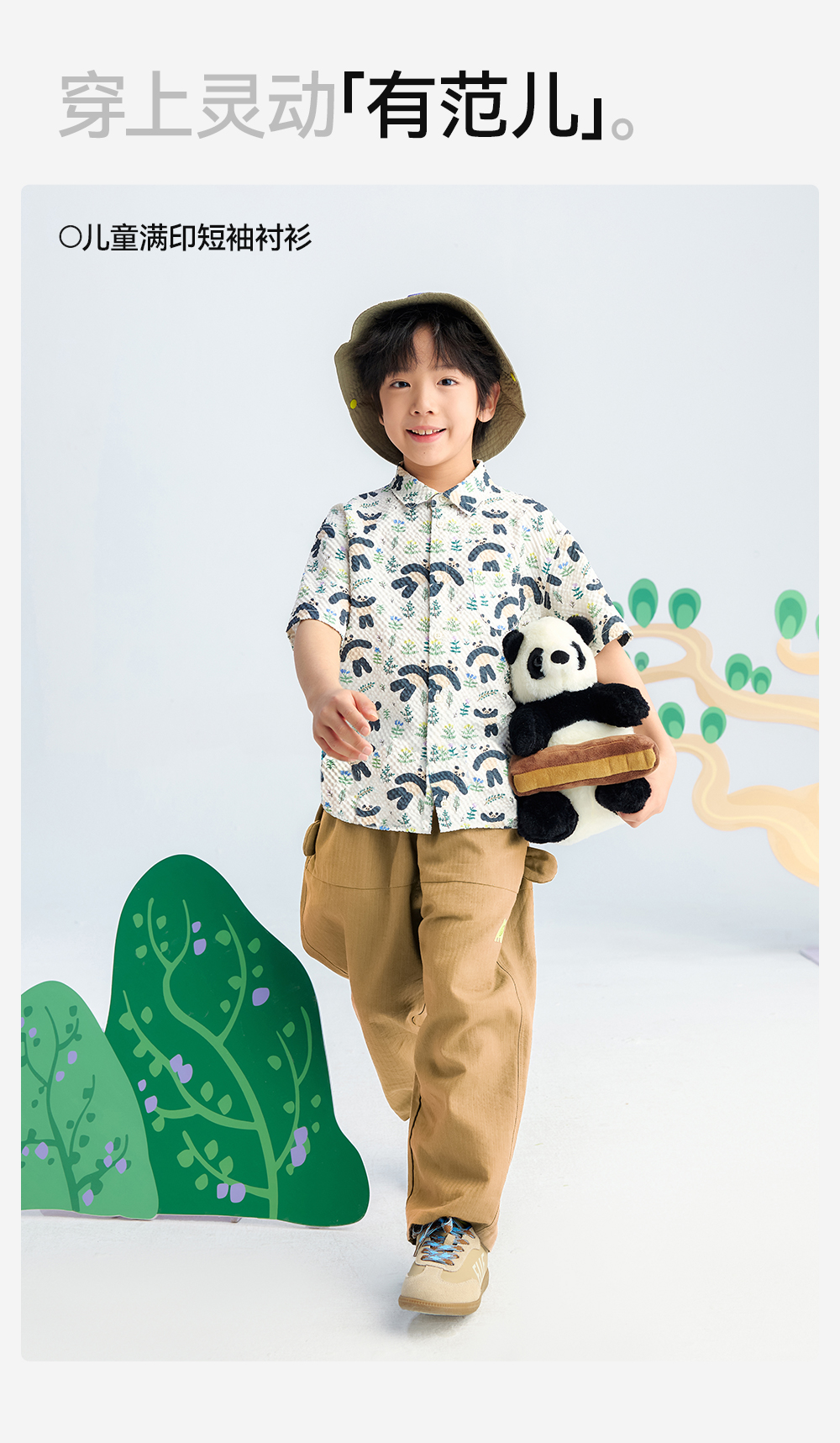 【儿童满印短袖衬衫】森林棠26夏款轻盈柔软卡通熊猫印花休闲衬衫40462236