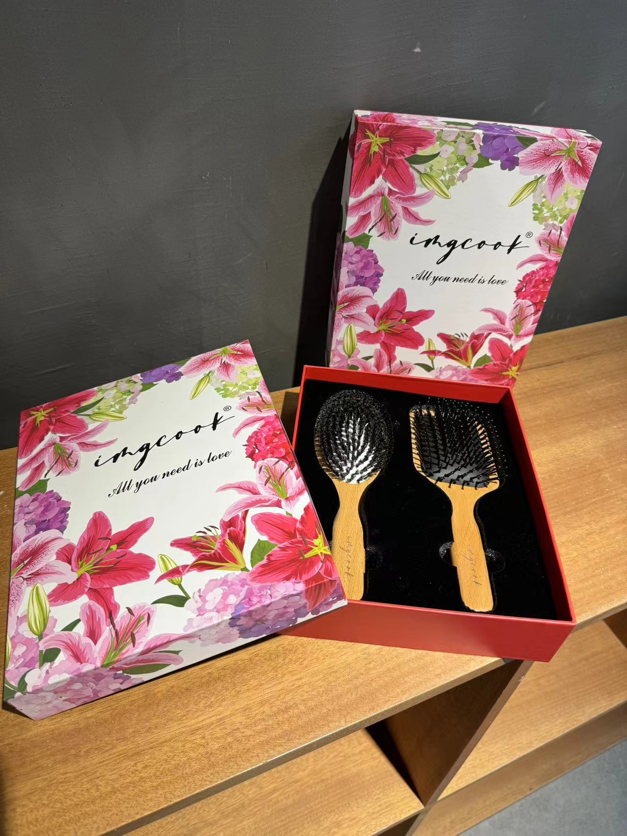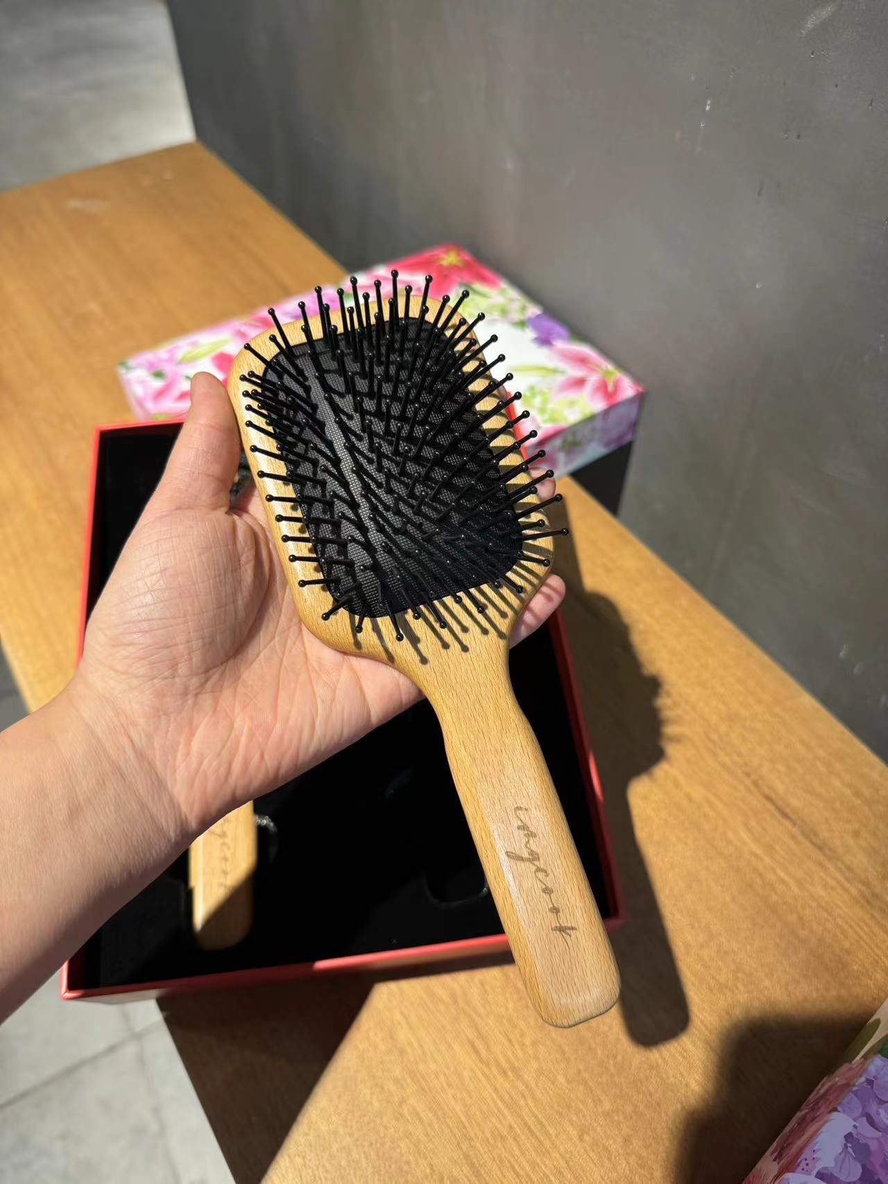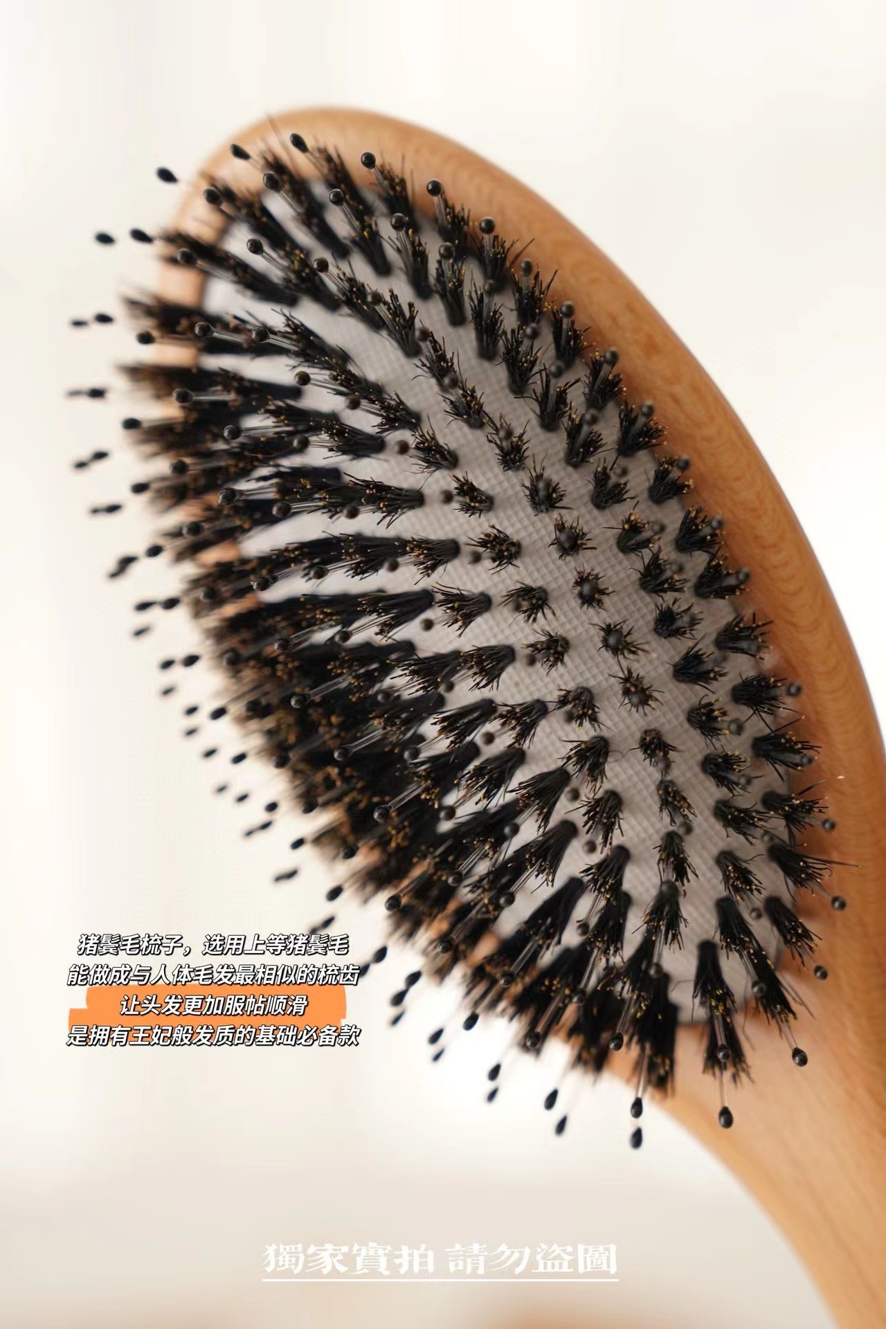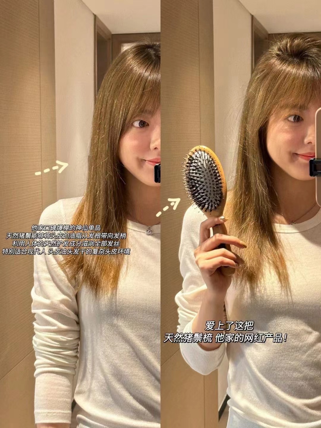 梳子套装!气囊按摩梳与天然猪鬃梳 按摩梳主打按摩头皮?梳通头发?蓬松发根 而天然猪鬃梳?更是他家口碑爆棚的神仙单品 天然猪鬃能够将头皮的油脂从发根带向发梢 利用人体的天然护发成分滋润全部发丝 特别适合现代人头皮油头发干的复杂头皮环境 两者配套?一次使用完毕 就会感到发型饱满了?发质亮泽了?发丝顺滑了 没入手之前?我自己都不信