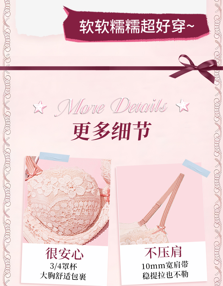 [棉花糖2.0]大胸显小3/4杯内衣女棉花糖超薄文胸聚拢大码女士胸罩