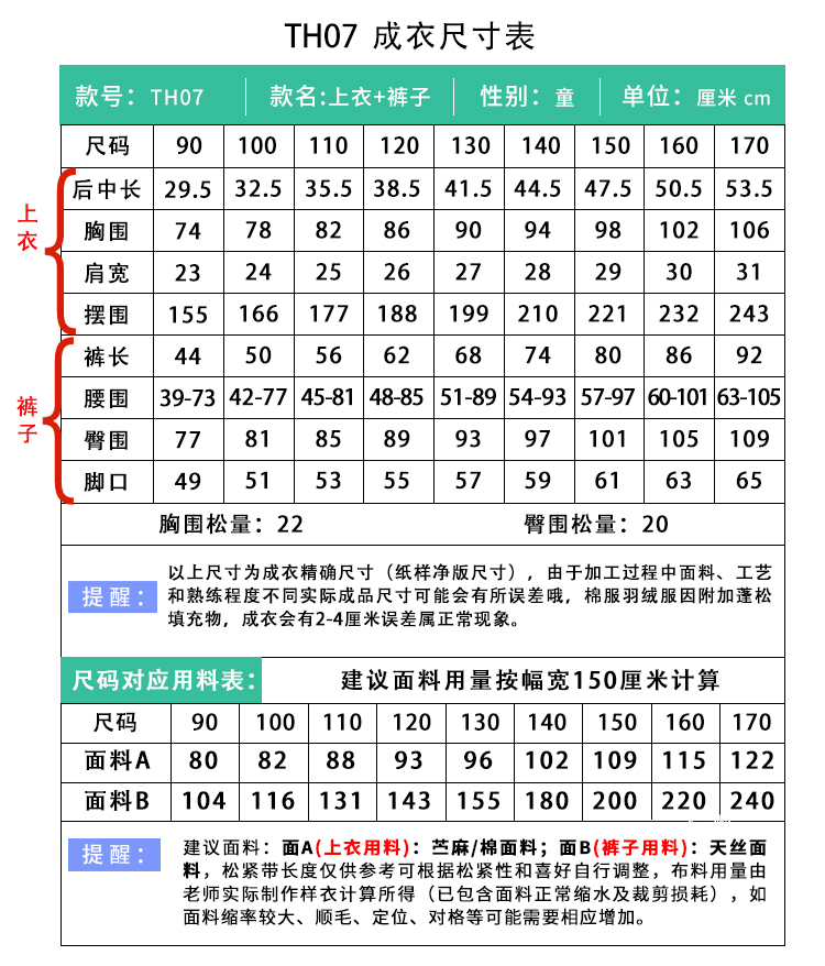 裁缝学苑TH07苎麻背心儿童娃娃衫纸样阔腿裤套装童装样板图纸