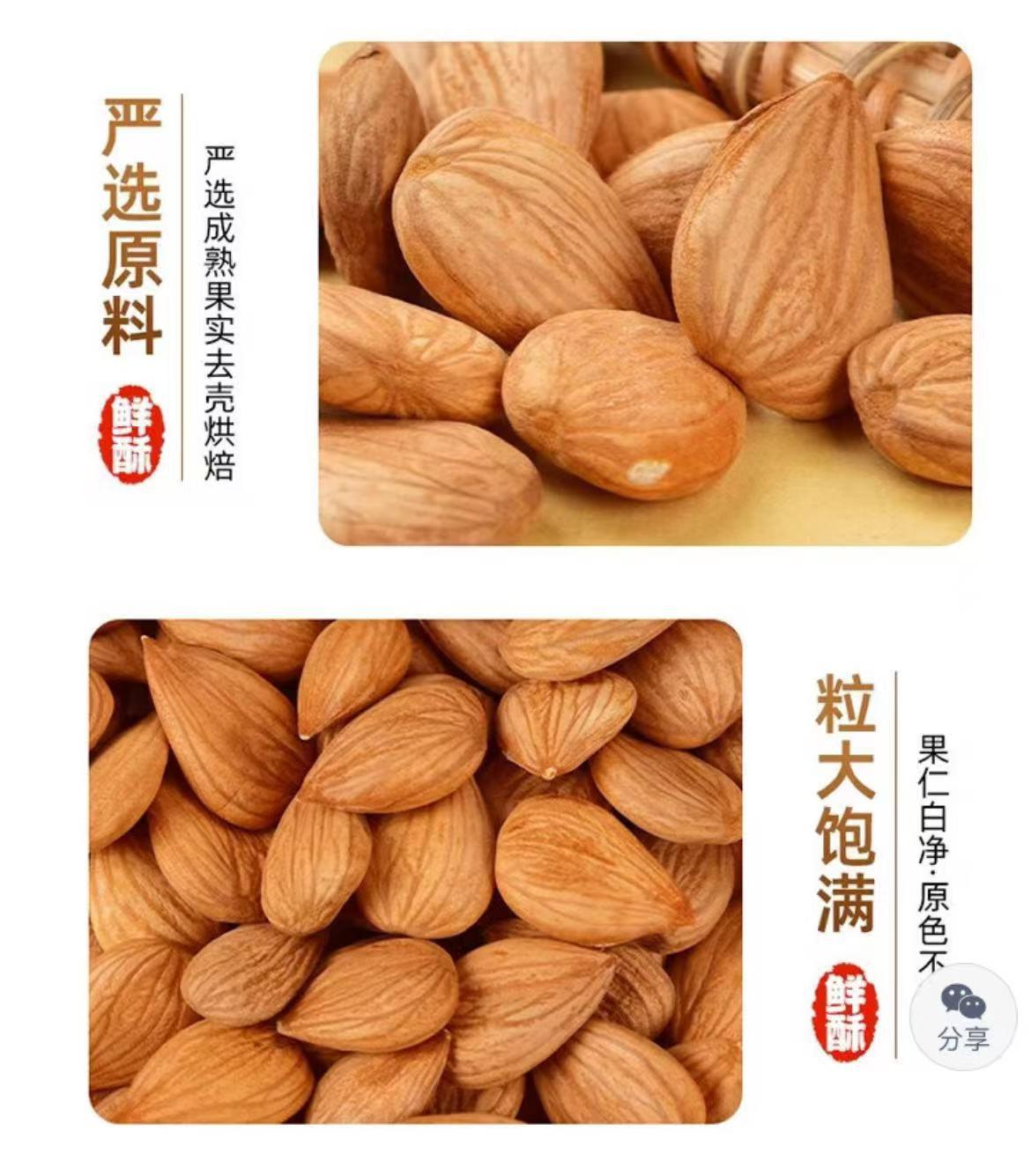 熟杏仁果仁 甜杏仁 新鲜河北大杏仁
