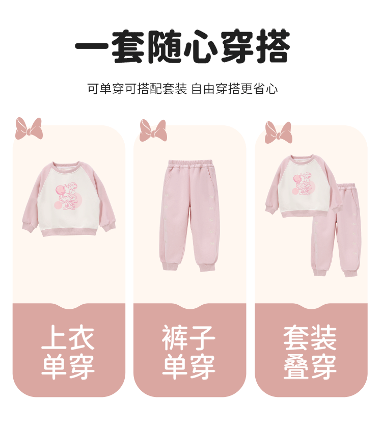 迪士尼童装女童卫衣套装春秋款甜美米妮宝宝上衣裤子出行两件套ZD3DT022