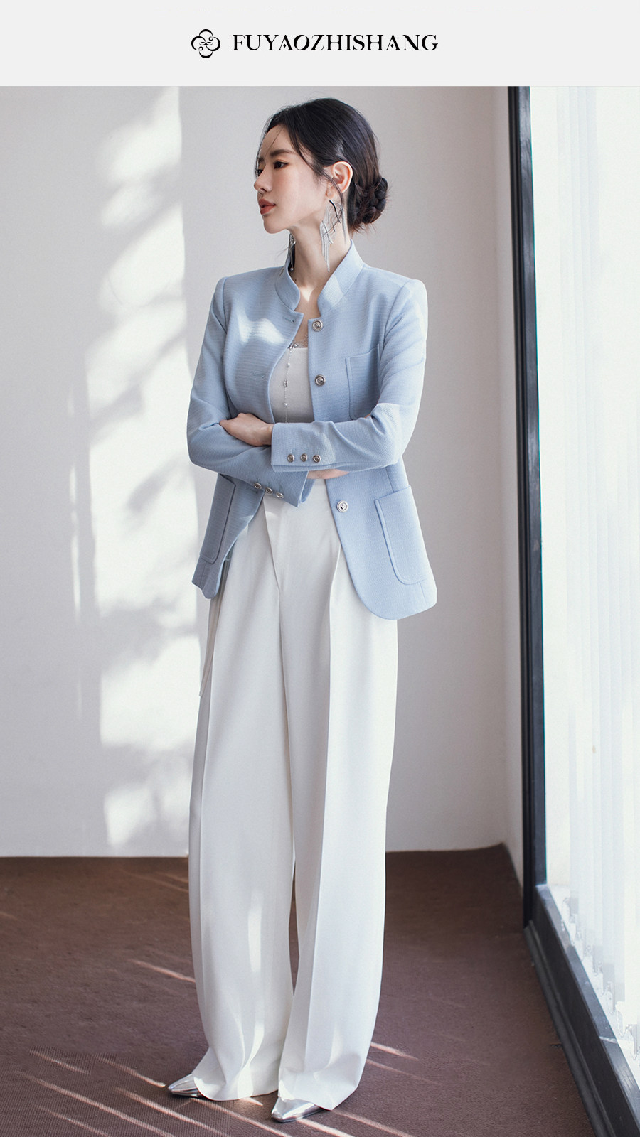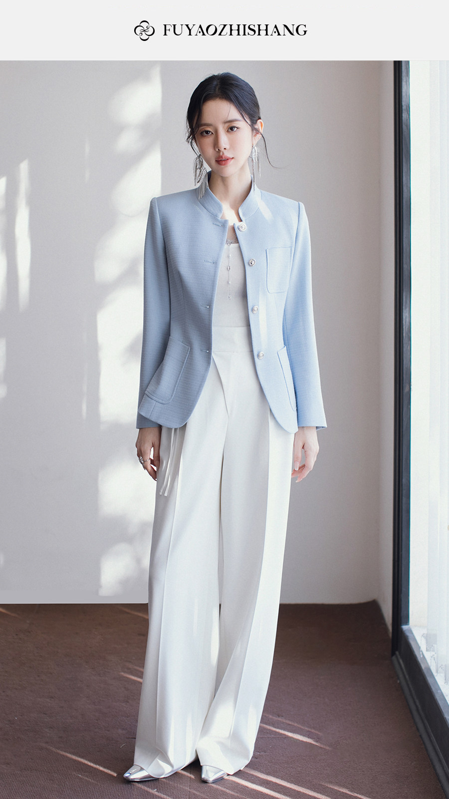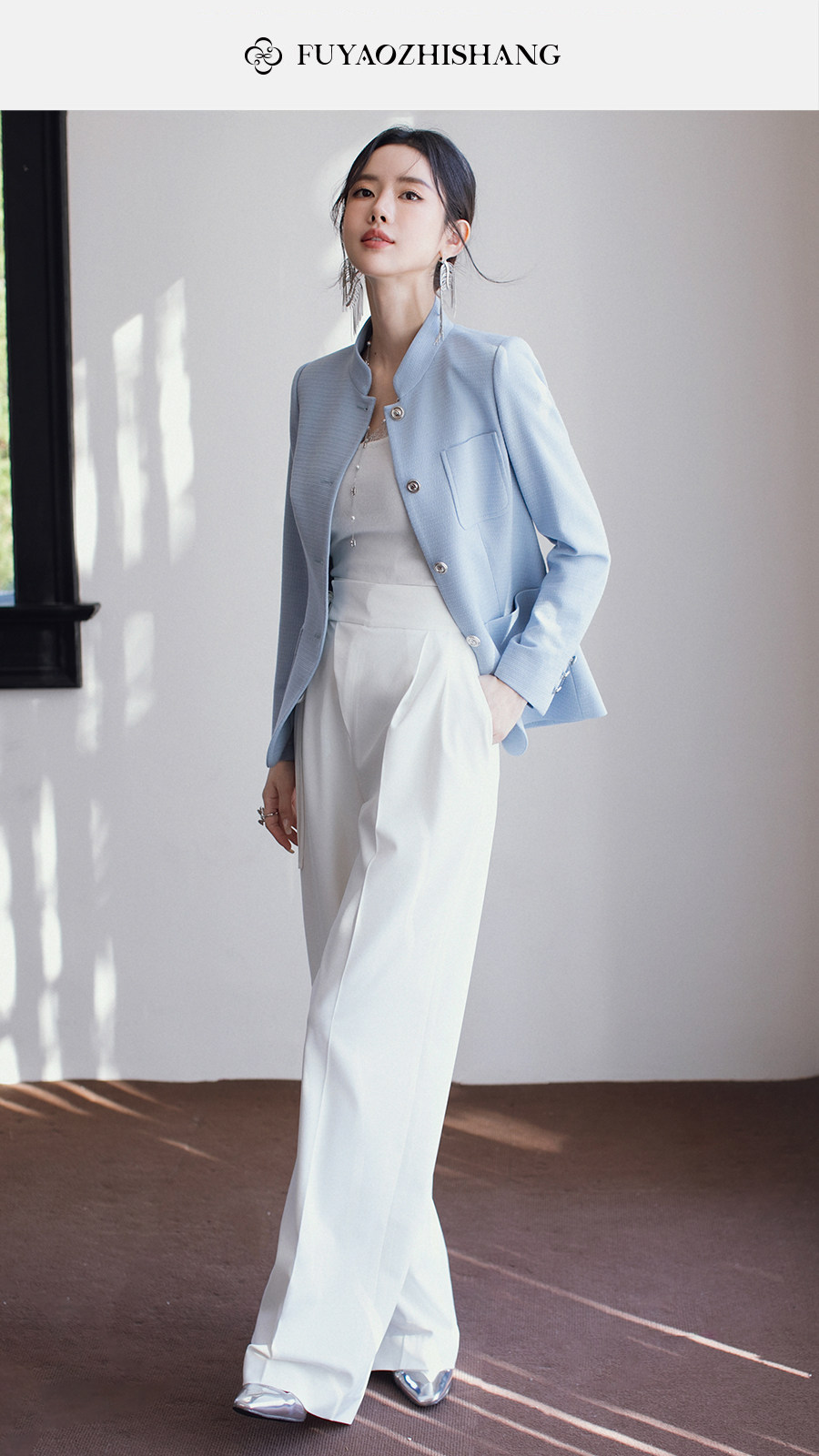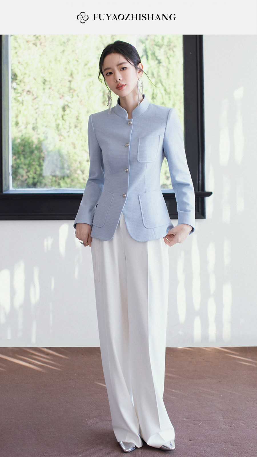 FUYAO扶摇直上 【极简通勤】新中式立领西装套装女2026春季两件套