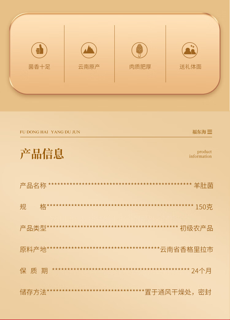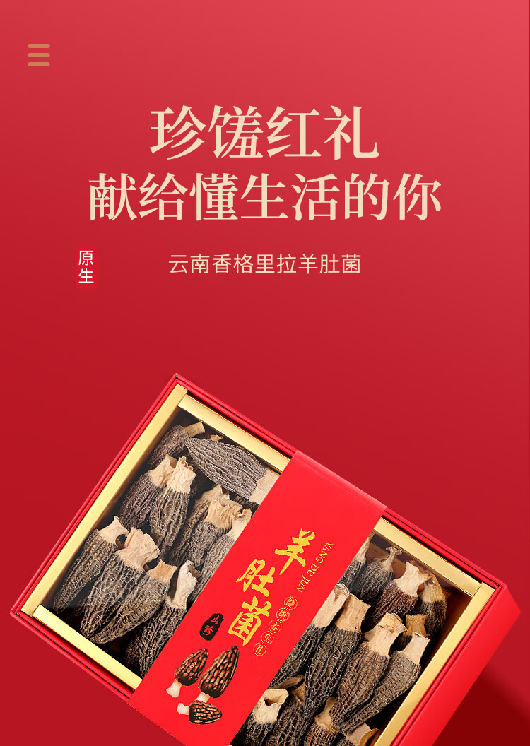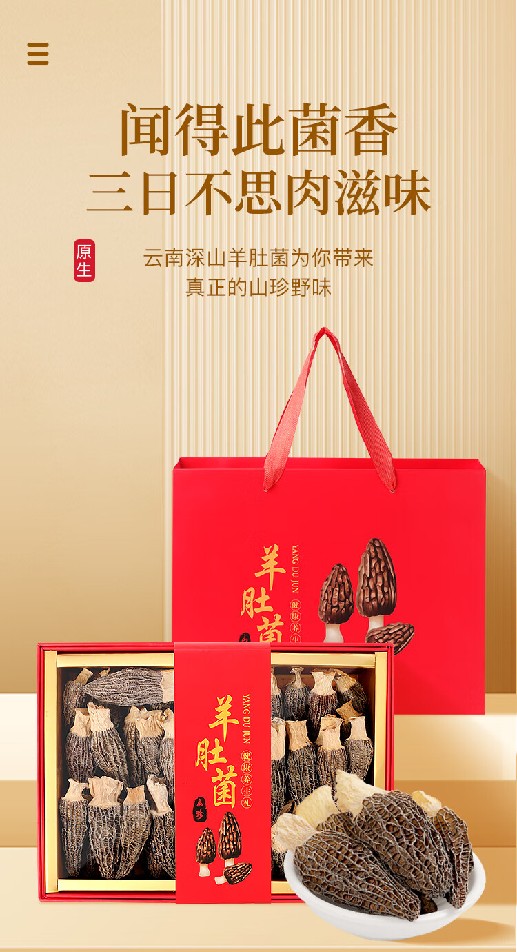 福东海 羊肚菌150克礼盒(5-8cm)云南特产山珍干货煲汤火锅食材端礼品