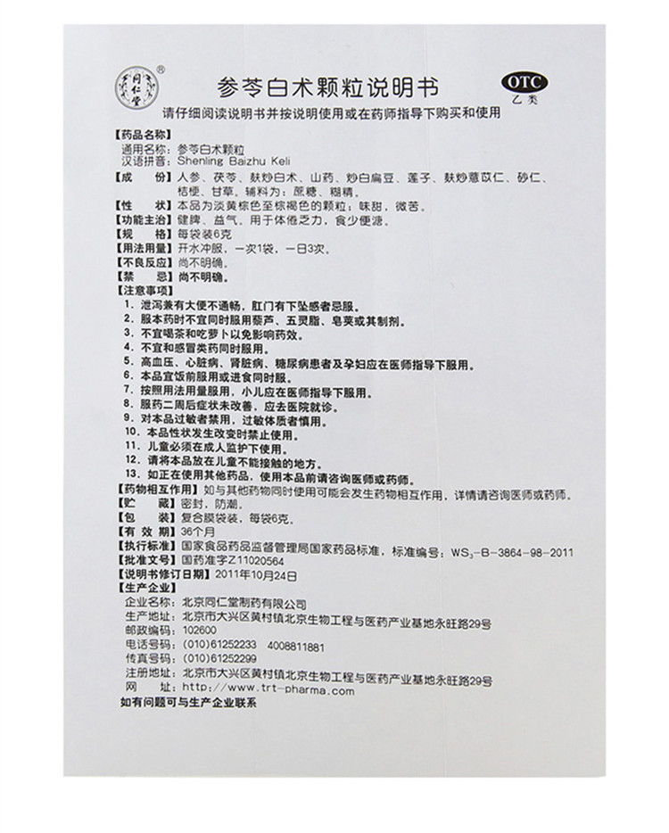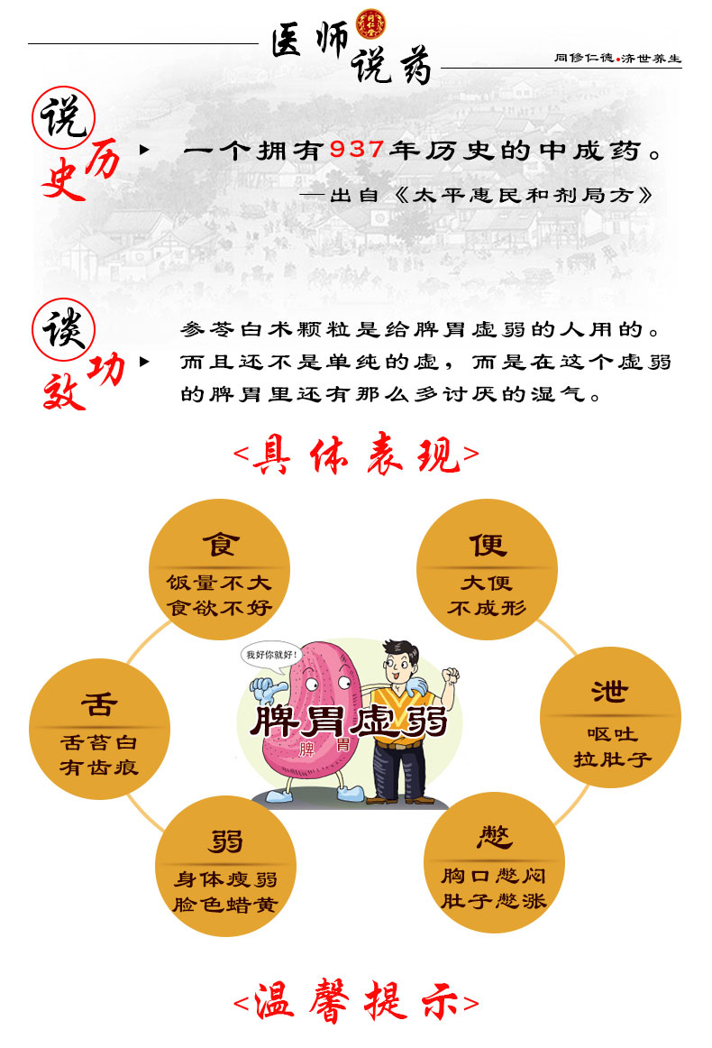 同仁堂参苓白术颗粒10袋体倦乏力脾胃虚弱健脾益气