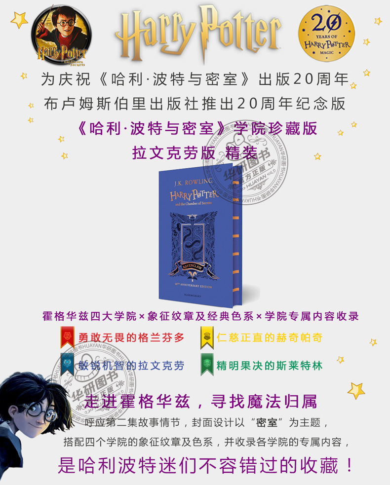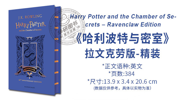 哈利波特与密室英文原版小说 Harry Potter and the Chamber of Secrets 20周年纪念拉文克劳精装版 学院珍藏版 JK 罗琳正版