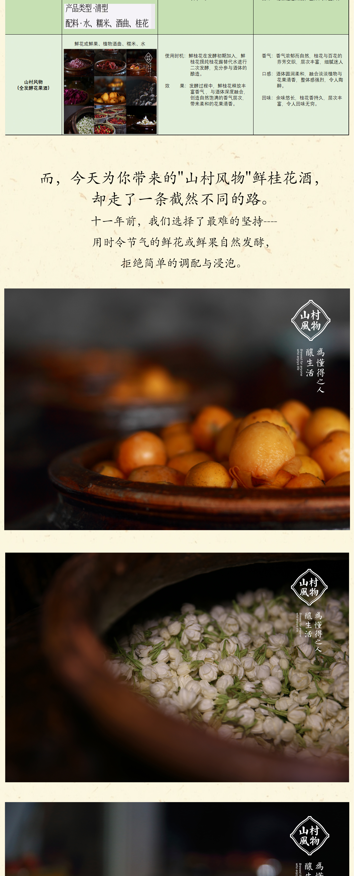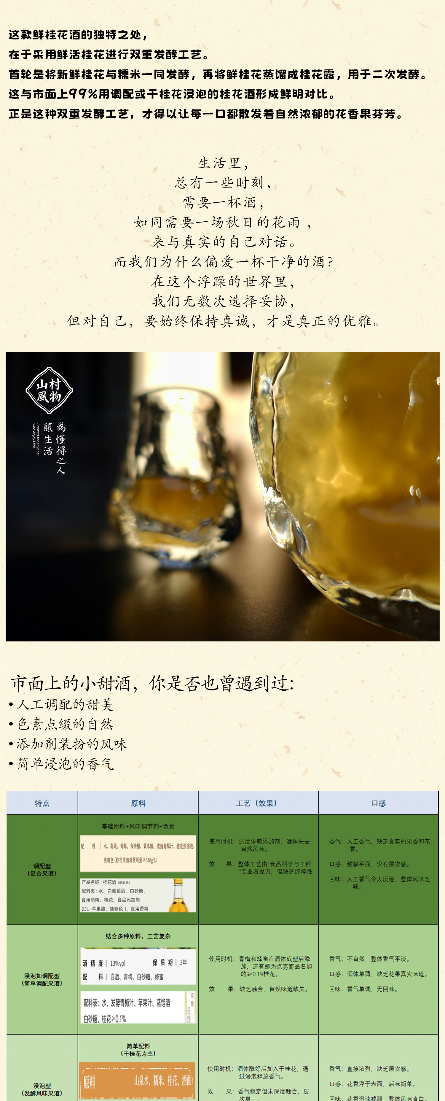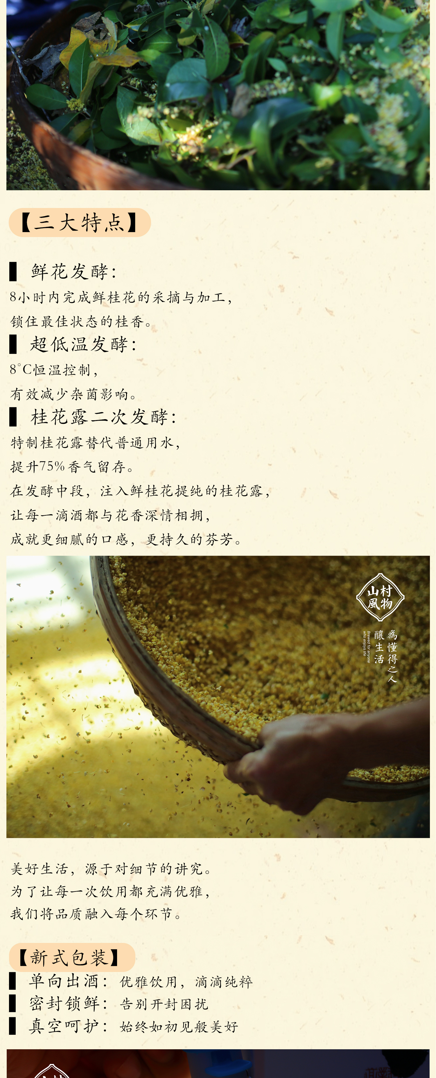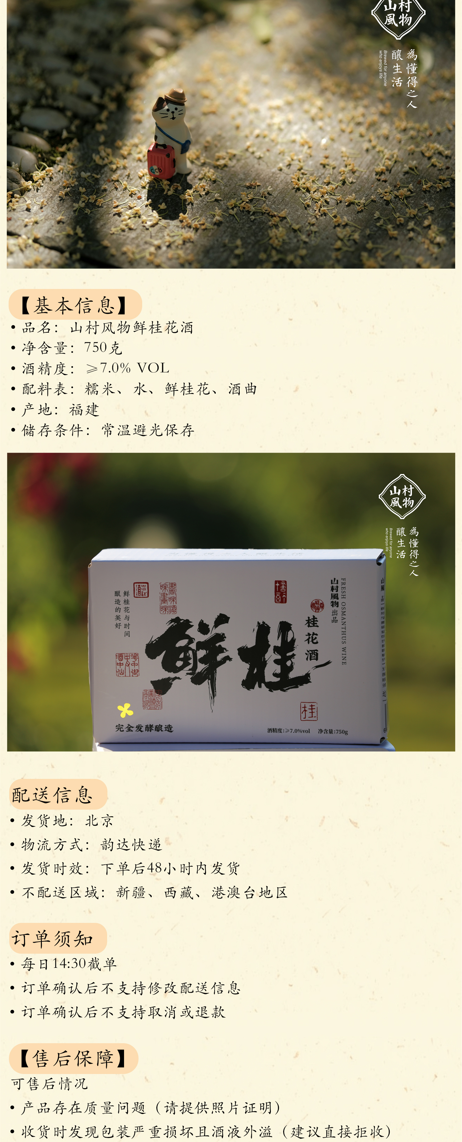 山村风物鲜桂花酒 铝箔袋装750g 玻璃瓶装350g