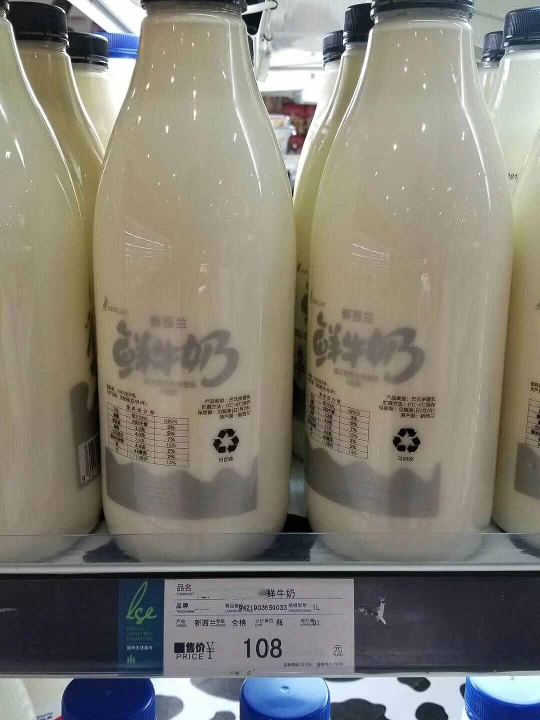 盒马鲜生同批次纽兰特鲜奶:售价108/瓶