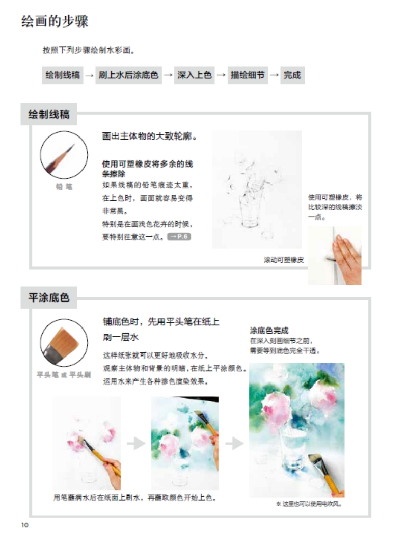 在学习水彩的过程中,学习者常会遇到各种问题,例如描绘物体前需要先仔细观察还是提笔就画?运笔时应该细心谨慎还是大胆果断?各种物体有特定的描绘方式吗?明明看起来很简单的物体,却为什么总画不出自己想要的样子?这些问题看似复杂,难以解决,其实只要掌握其中的规律和绘画诀窍,就能事半功倍,乐学水彩。