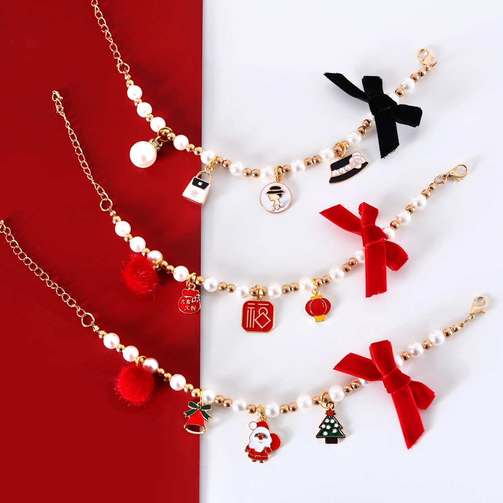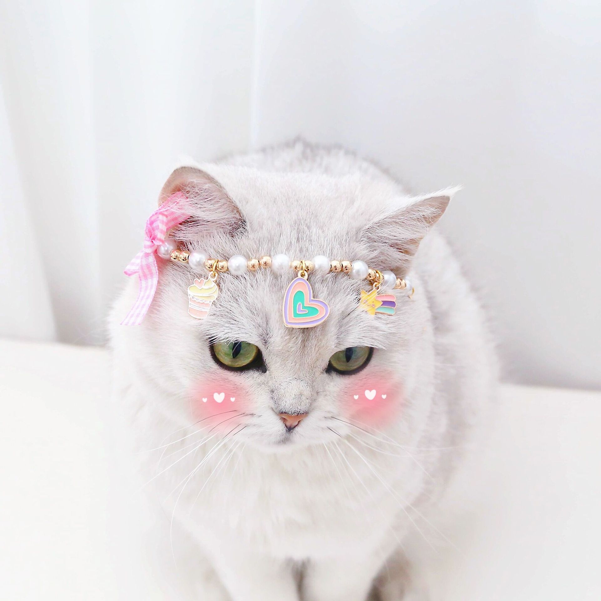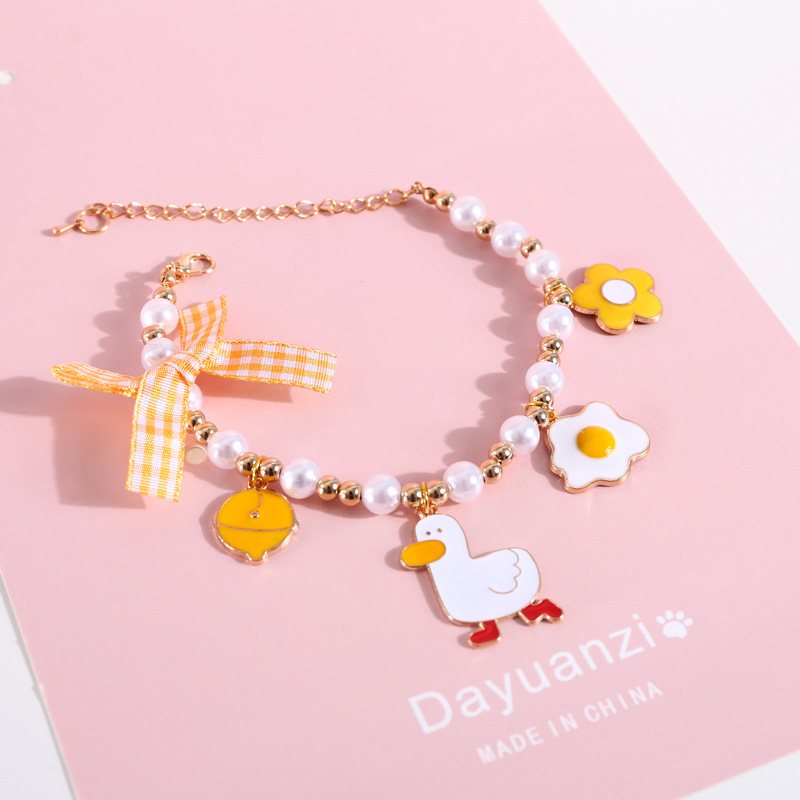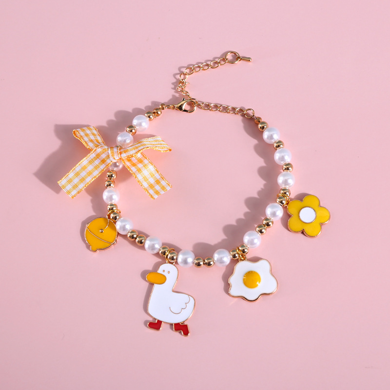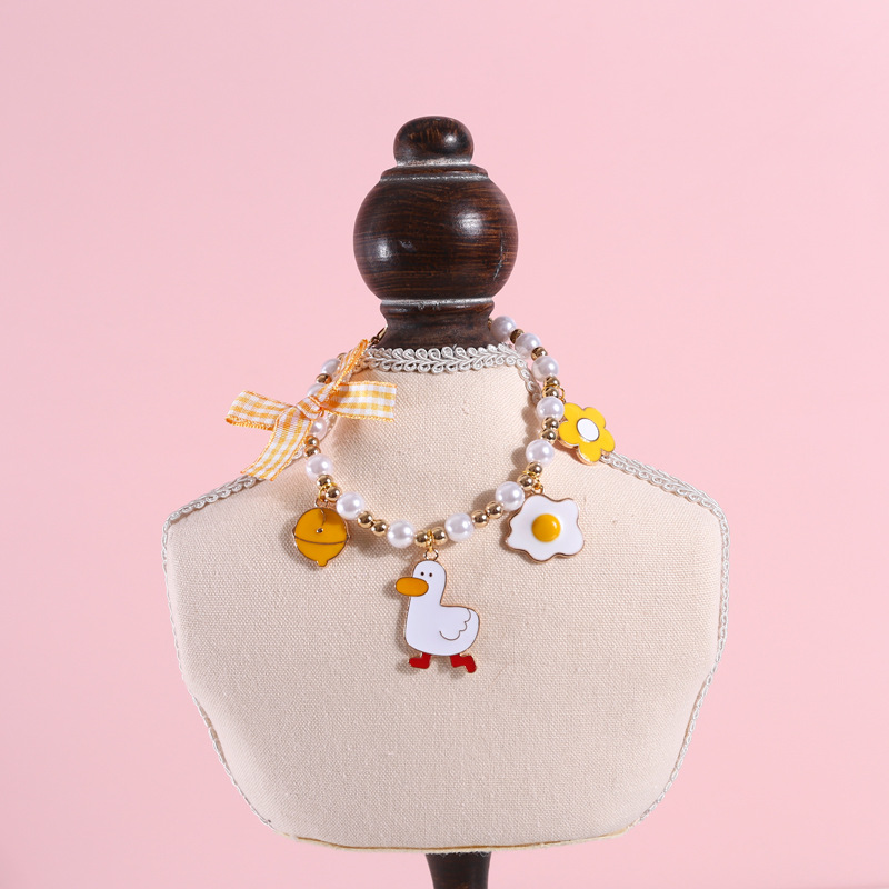 宠物珍珠蝴蝶结鸭子冰激凌铃铛可爱可调节猫咪狗兔子生日项圈项链