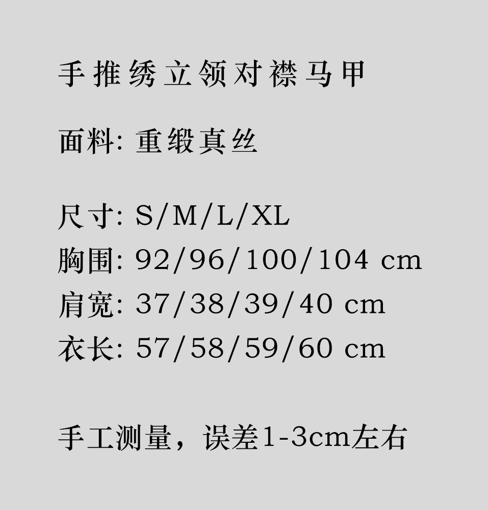 瑕疵| 盛唐牡丹|手推绣立领盘扣对襟马甲 [特价品](特殊商品不退不换)