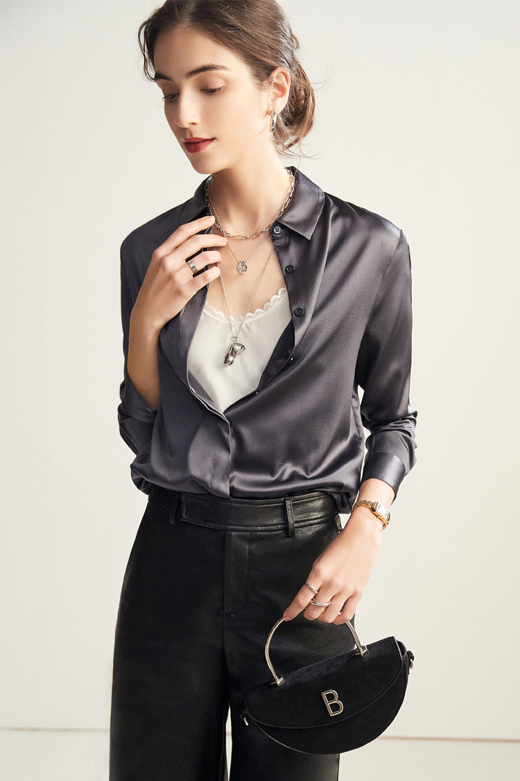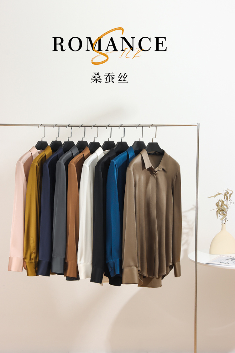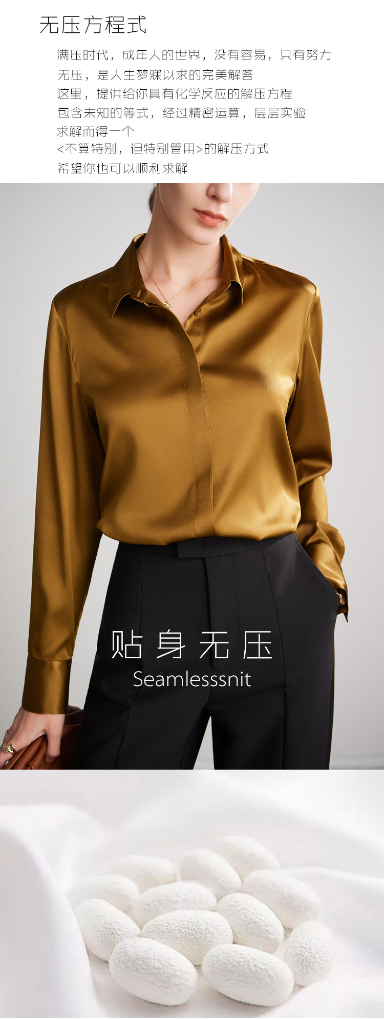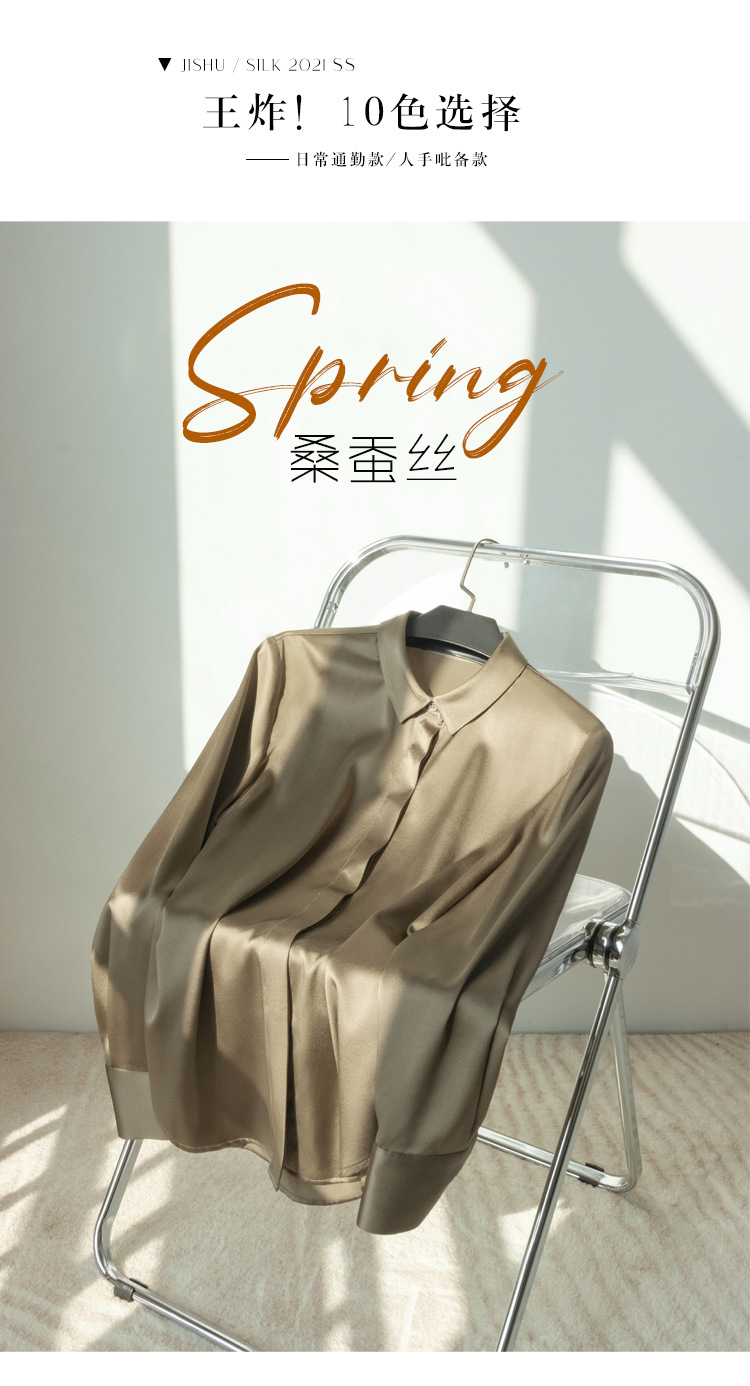 真丝衬衫女上衣时尚内搭2024新款春夏装设计感桑蚕丝翻领长袖衬衣