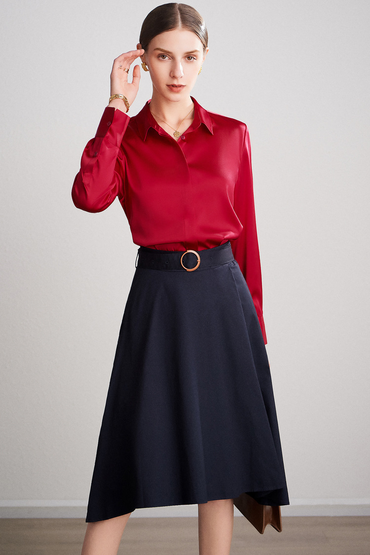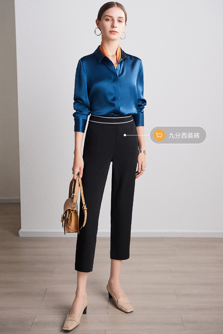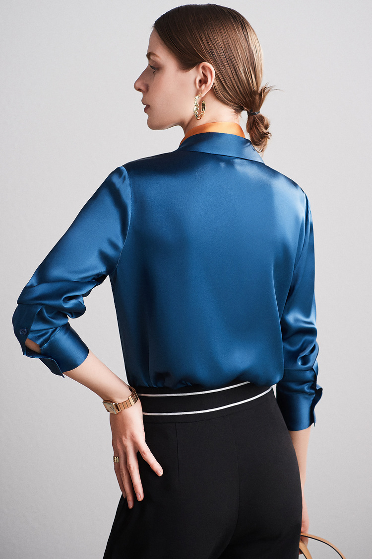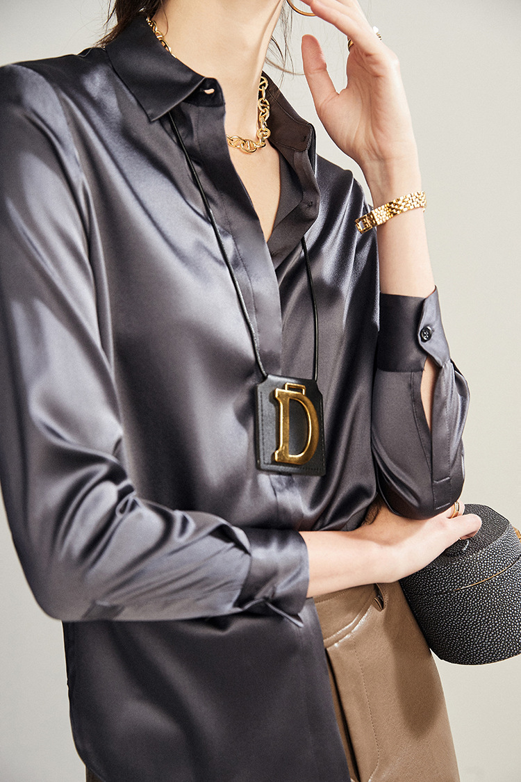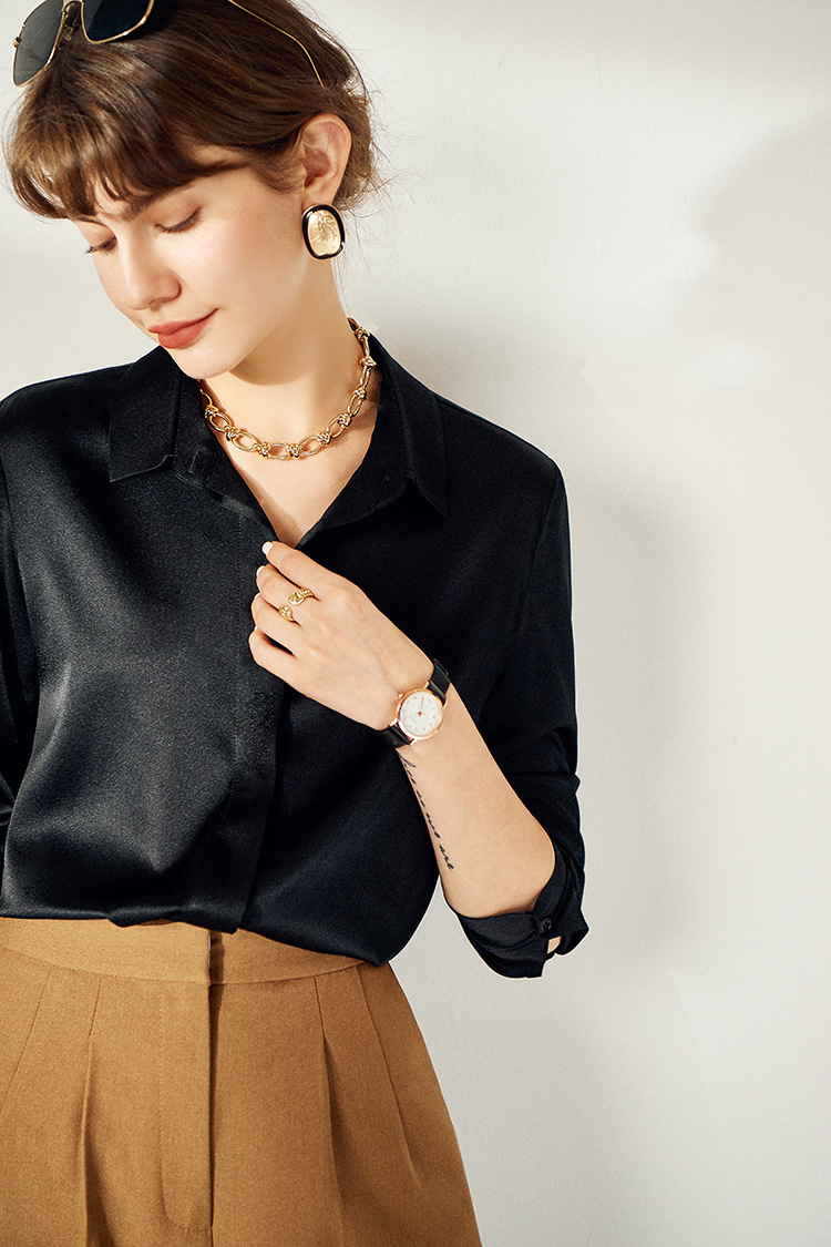 真丝衬衫女上衣时尚内搭2024新款春夏装设计感桑蚕丝翻领长袖衬衣