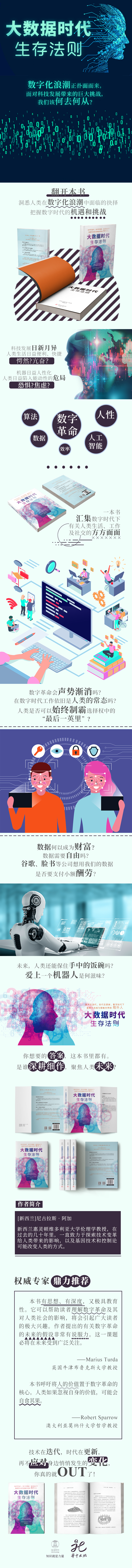 身处大数据时代,我们每个人都是数字革命的参与者。大数据带来的信息风暴正在变革我们的思维、工作和生活。互联网、机器和算法使人类行为变得越来越容易量化,也逐渐将我们的社会变成了一个巨大的数据库。对于如何看待数字革命,我们的视角可能各有不同,但数字革命下,高度效率化的机器已然威胁了人类作为施动者或是自身命运主宰者的地位,甚至,机器正越来越像人,也将变成我们的爱人或情人。