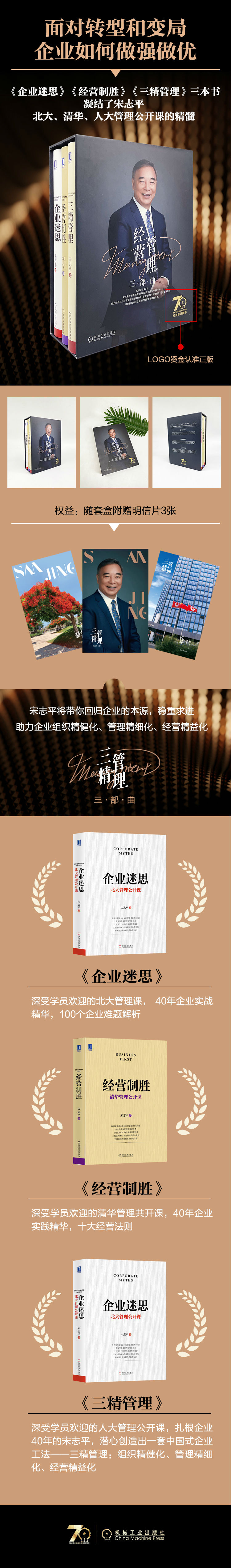 书名:宋志平经营管理三部曲(精装共三册 三精管理 经营制胜 企业迷思) 定价:329.0 ISBN:HZ202249 版次:1
