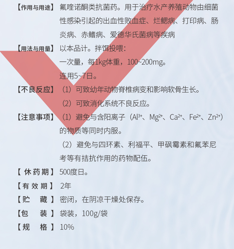 华畜10%恩诺沙星可溶性粉水产用鱼虾蟹出血腹水肠炎烂鳃鱼药水产