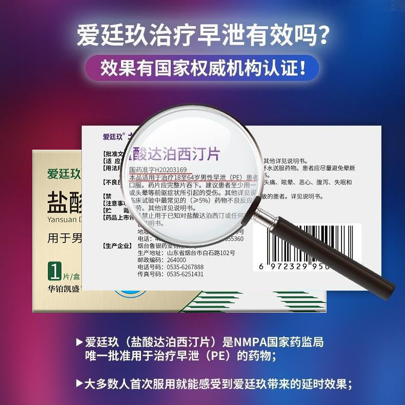 拍下立减+配延时礼】爱廷玖盐酸达泊西汀片30mg*1片治疗男性早泄服男用房事用药官方授权正品国产达泊西丁爱廷久开心堂旗舰店