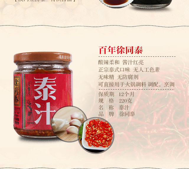 礼包组合内容:寿司酱油一瓶(200ml)、拌面拌饭酱一瓶(220g)、香辣牛肉酱一瓶(210g)、泰汁一瓶(220g)、辣油一瓶(200g)