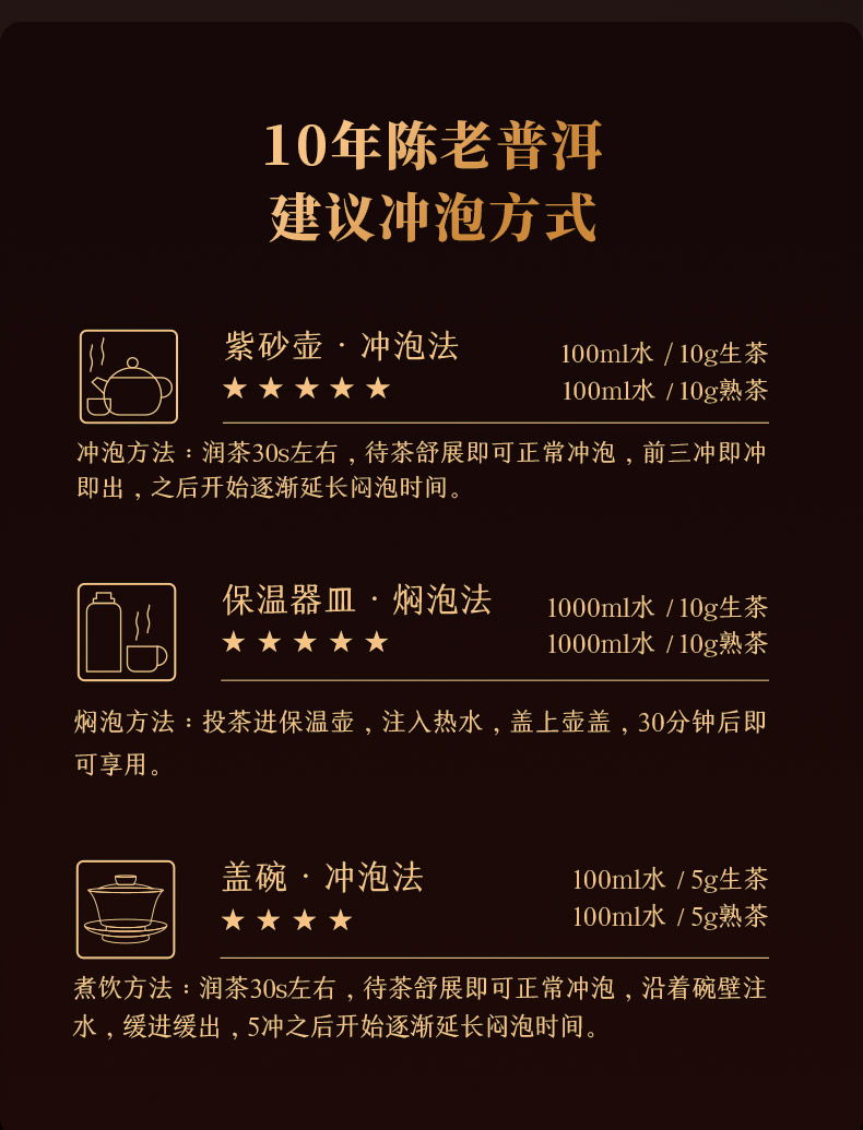 双陈老金标10年陈礼盒120g/盒送礼装勐海古树熟茶顺滑细腻便携小圆饼掰泡茶