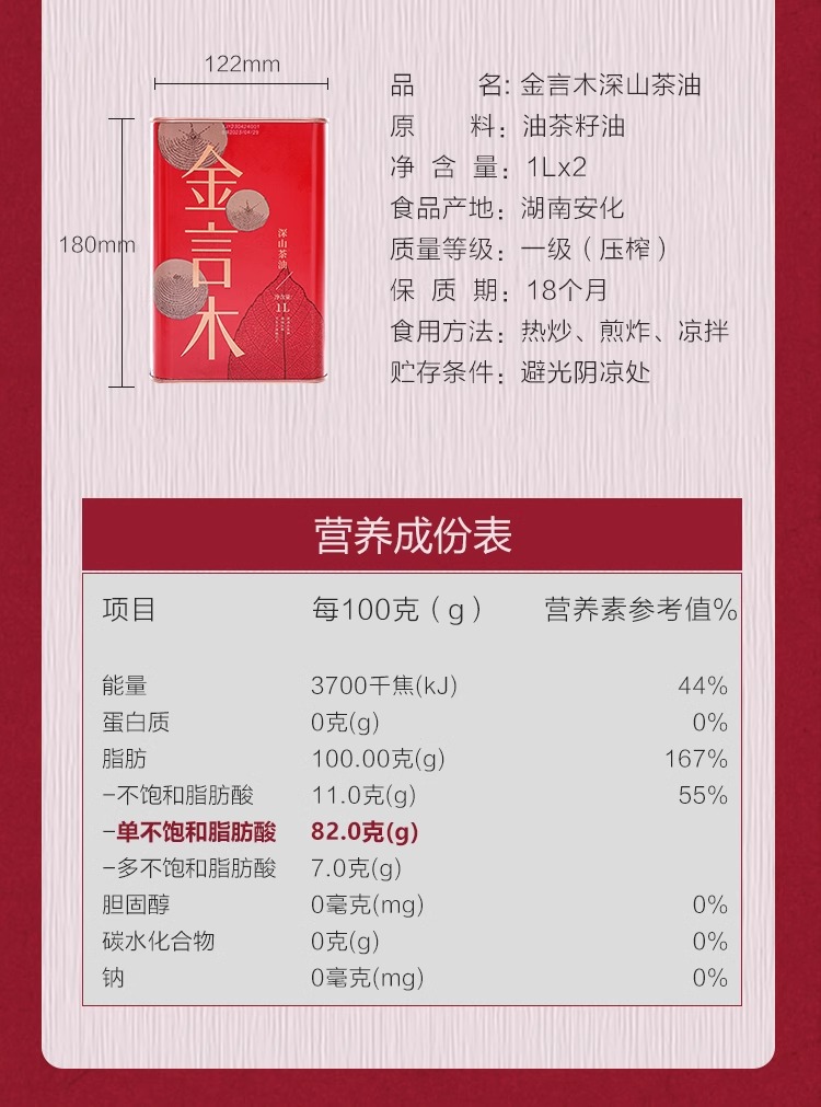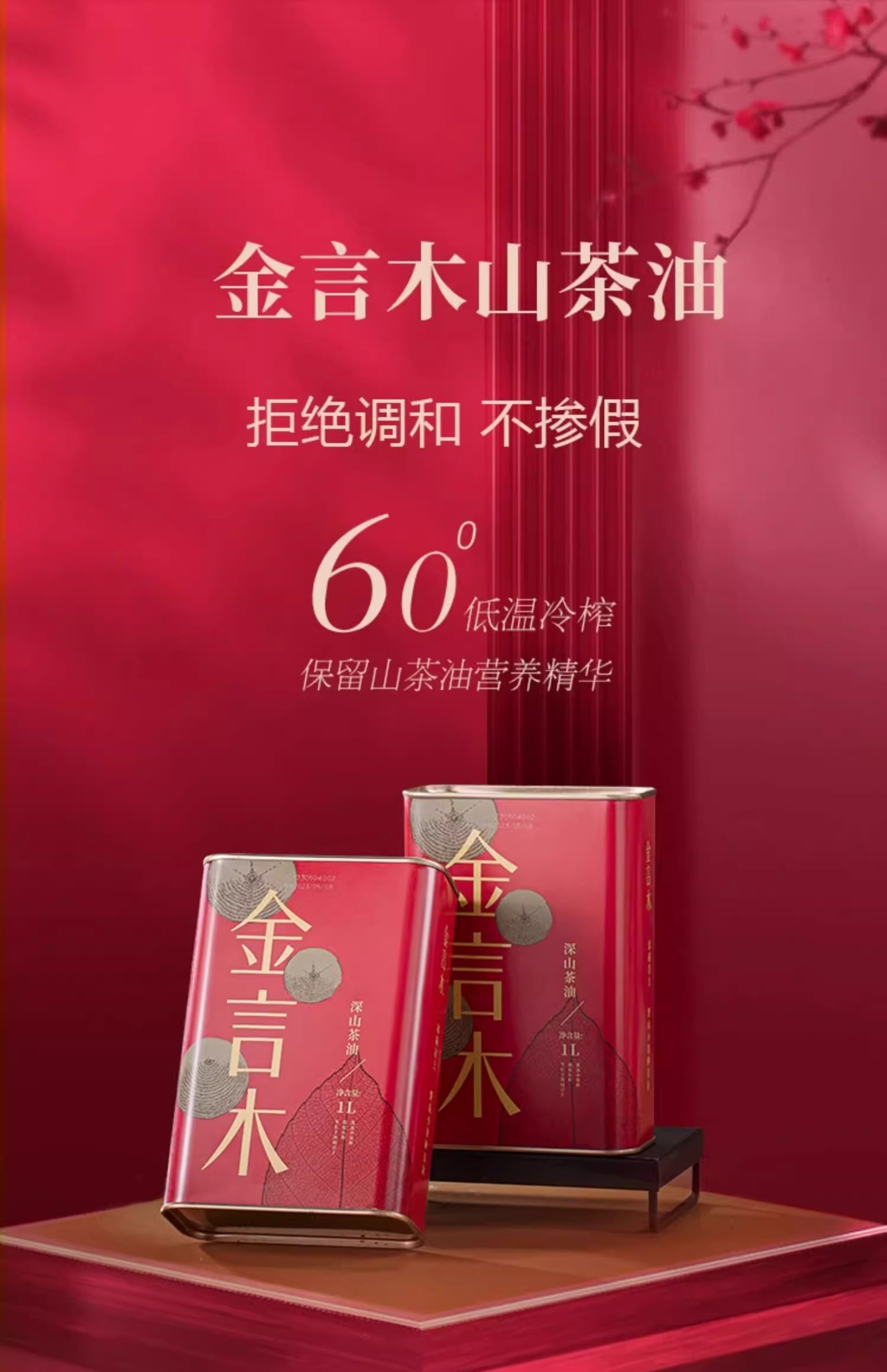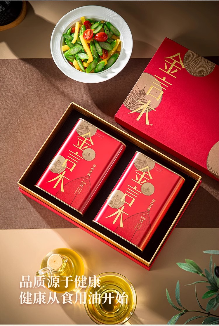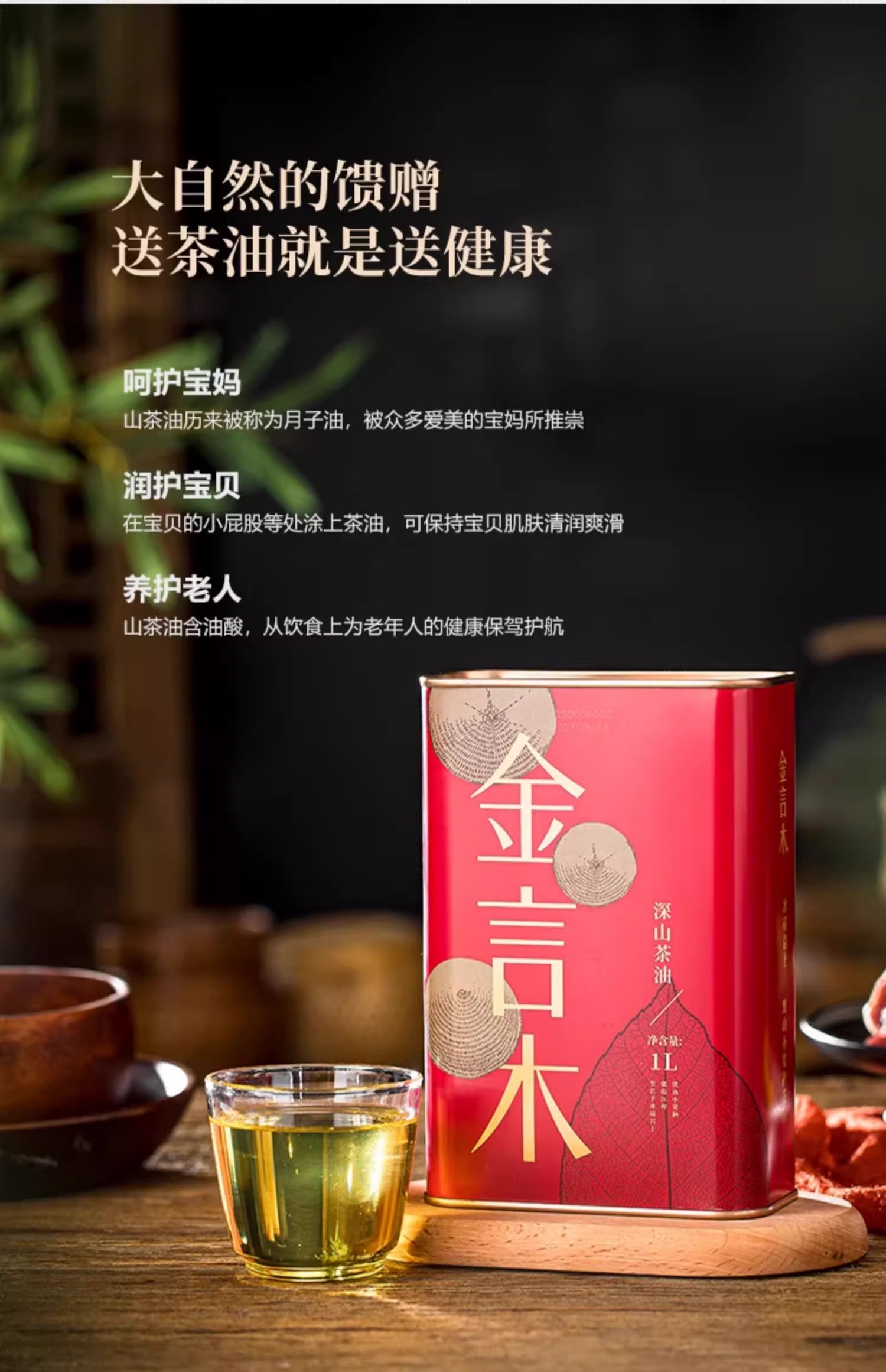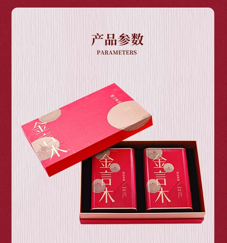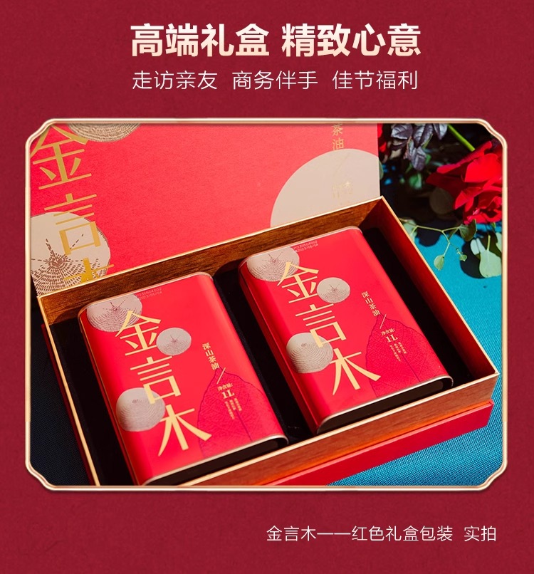 金言木深山茶油一级物理冷榨红色礼盒装 1L*2/盒