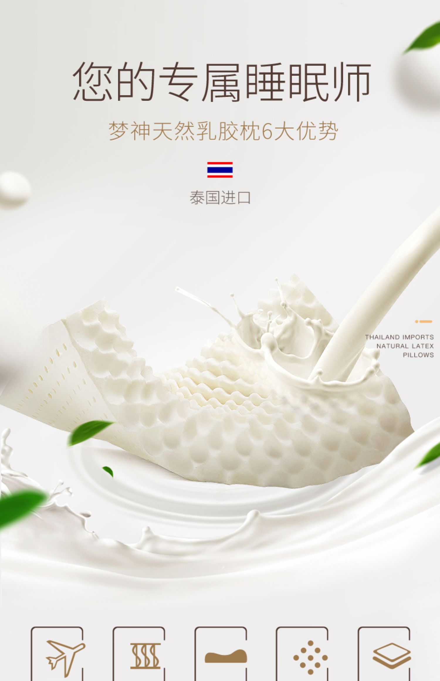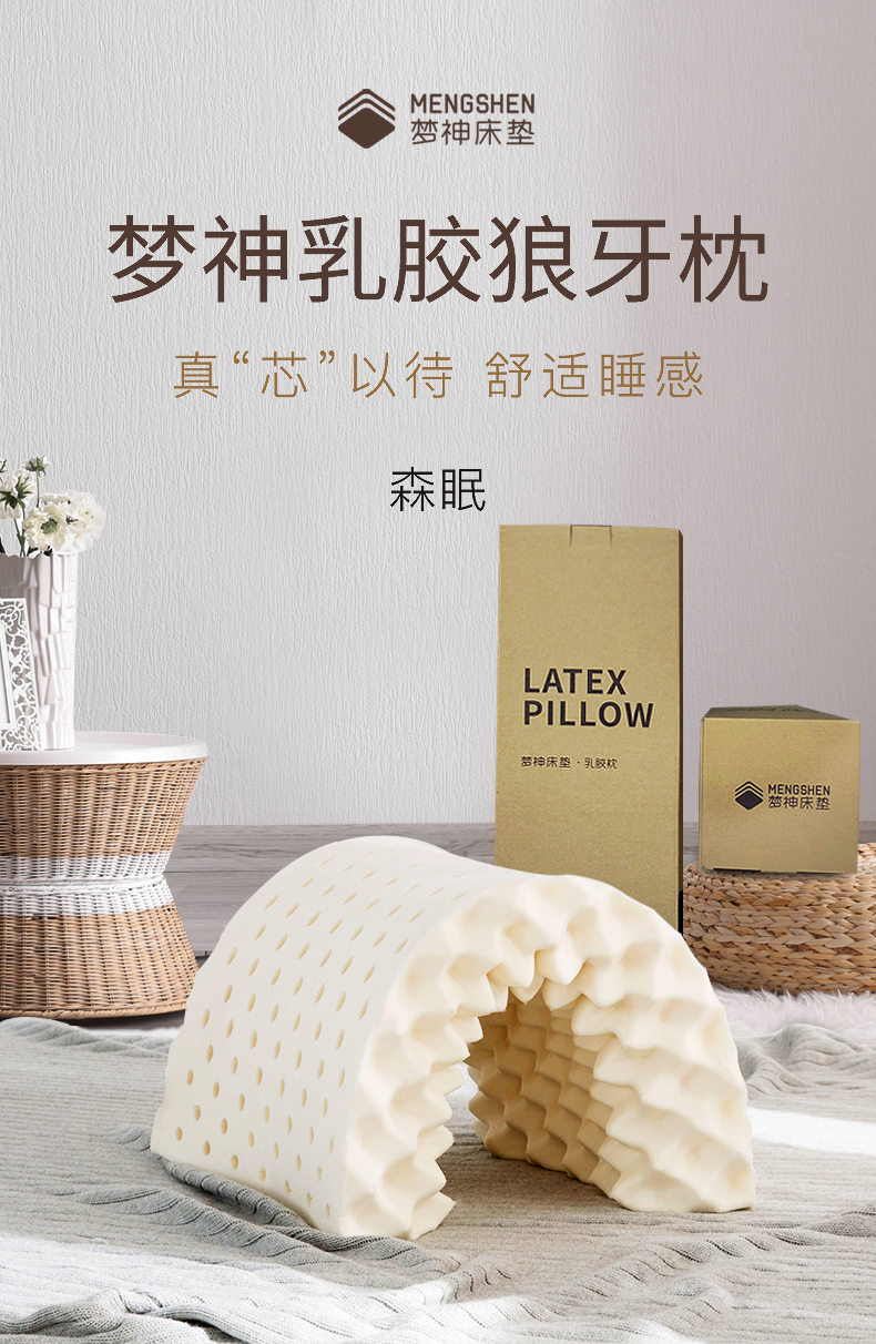【氧气直购节】梦神泰国天然乳胶枕狼牙枕儿童成人护颈枕单人枕芯橡胶颈椎枕头