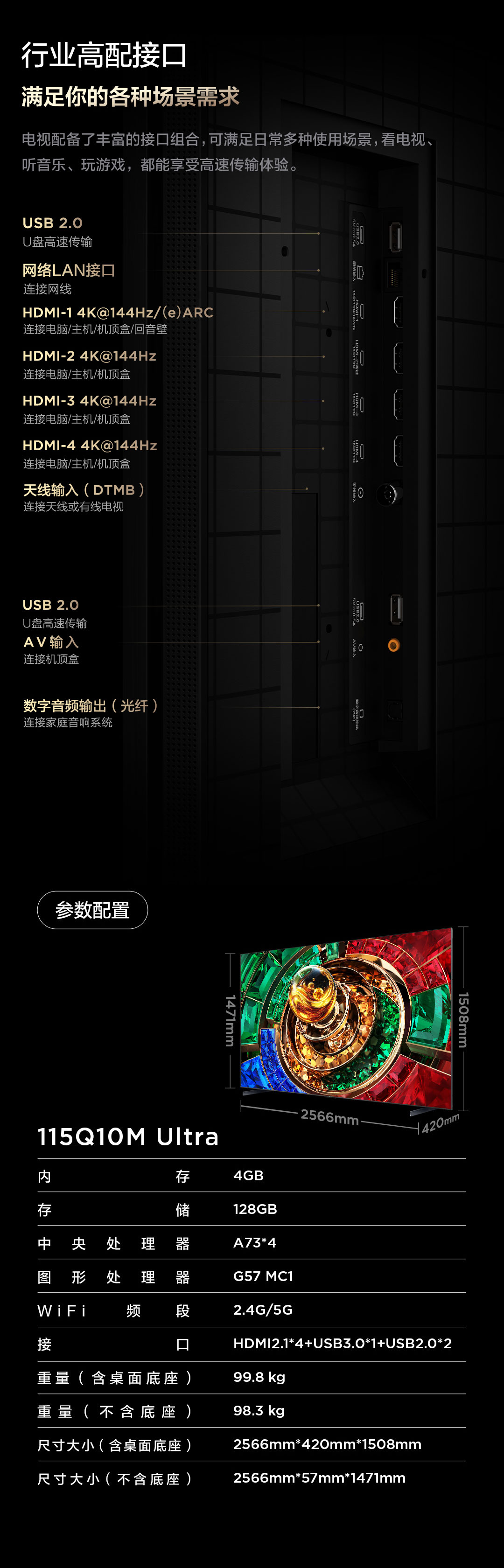 【新品上市】TCL电视 115Q10M Ultra 115英寸 RGB-Mini LED 蝶翼星曜屏 RGB万象分区 绚彩XDR 9000nits 超薄电视