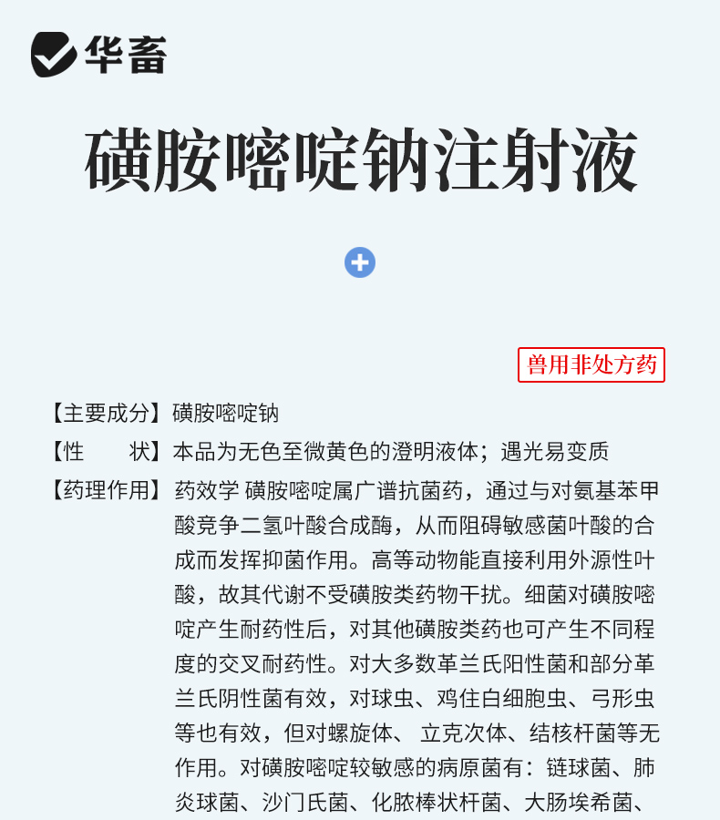 华畜磺胺嘧啶钠注射液10ml*10支 弓形体 脑炎形链球菌 呼吸急促 猪副伤寒 畜用