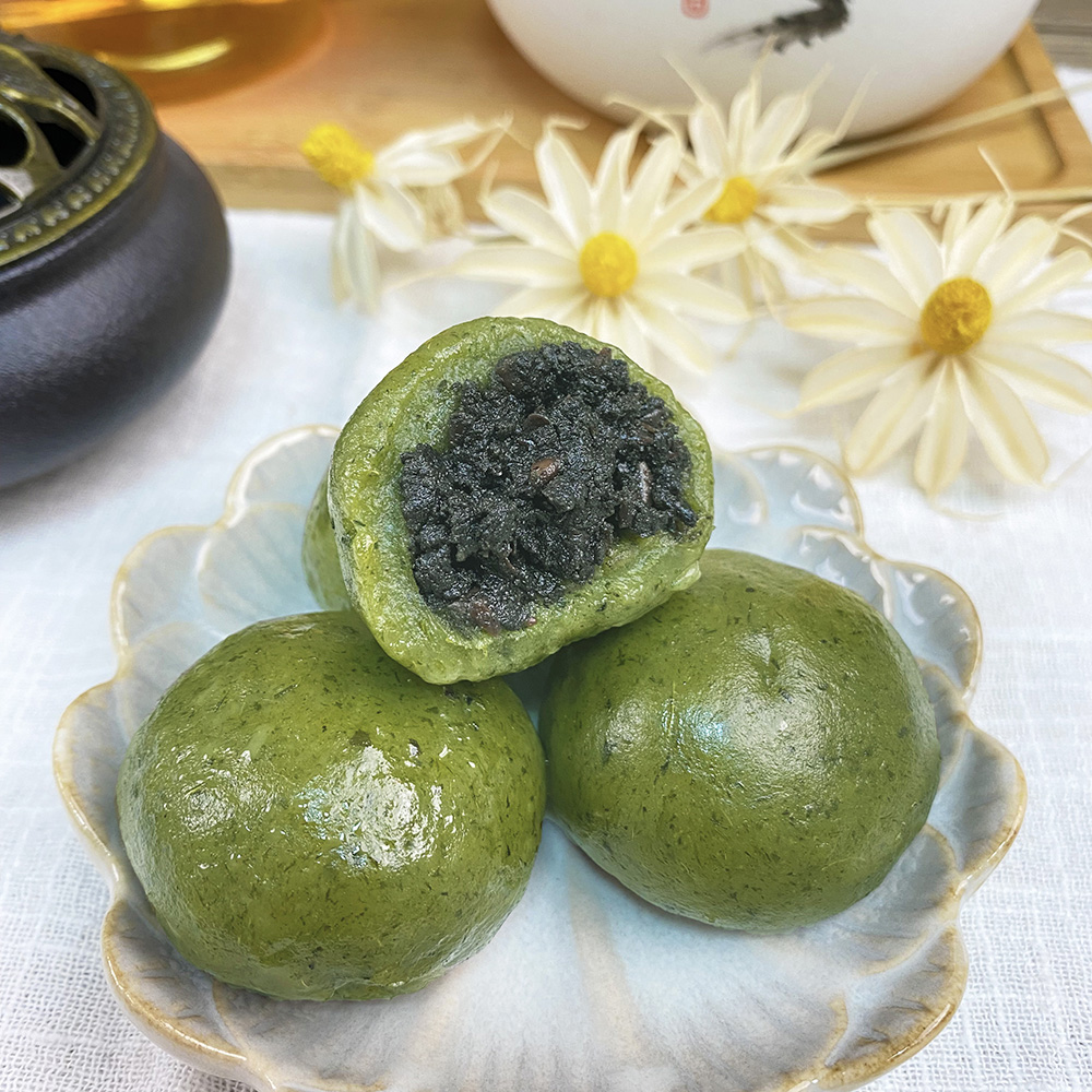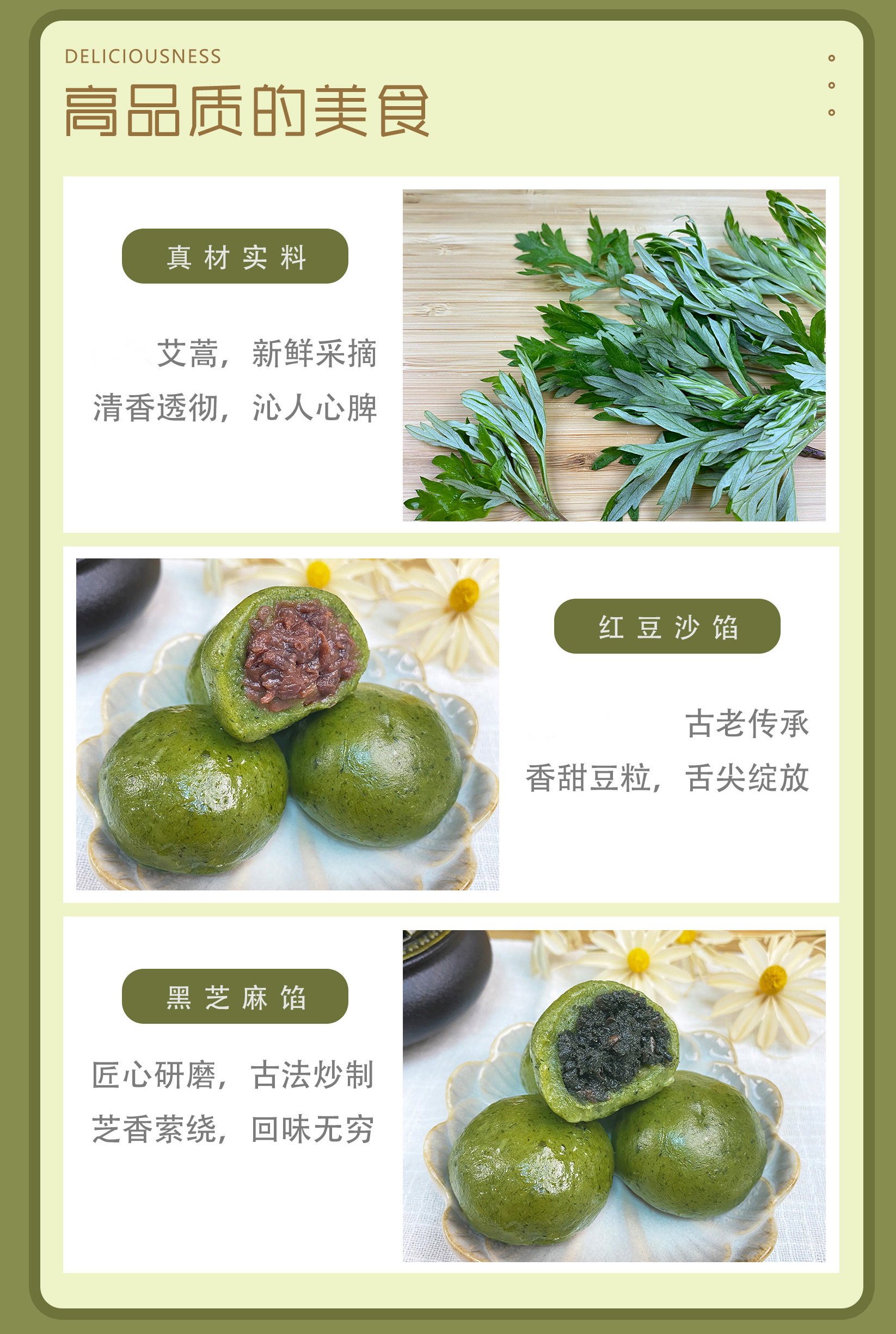 纯素青团 豆沙黑芝麻馅 手工艾叶青团子