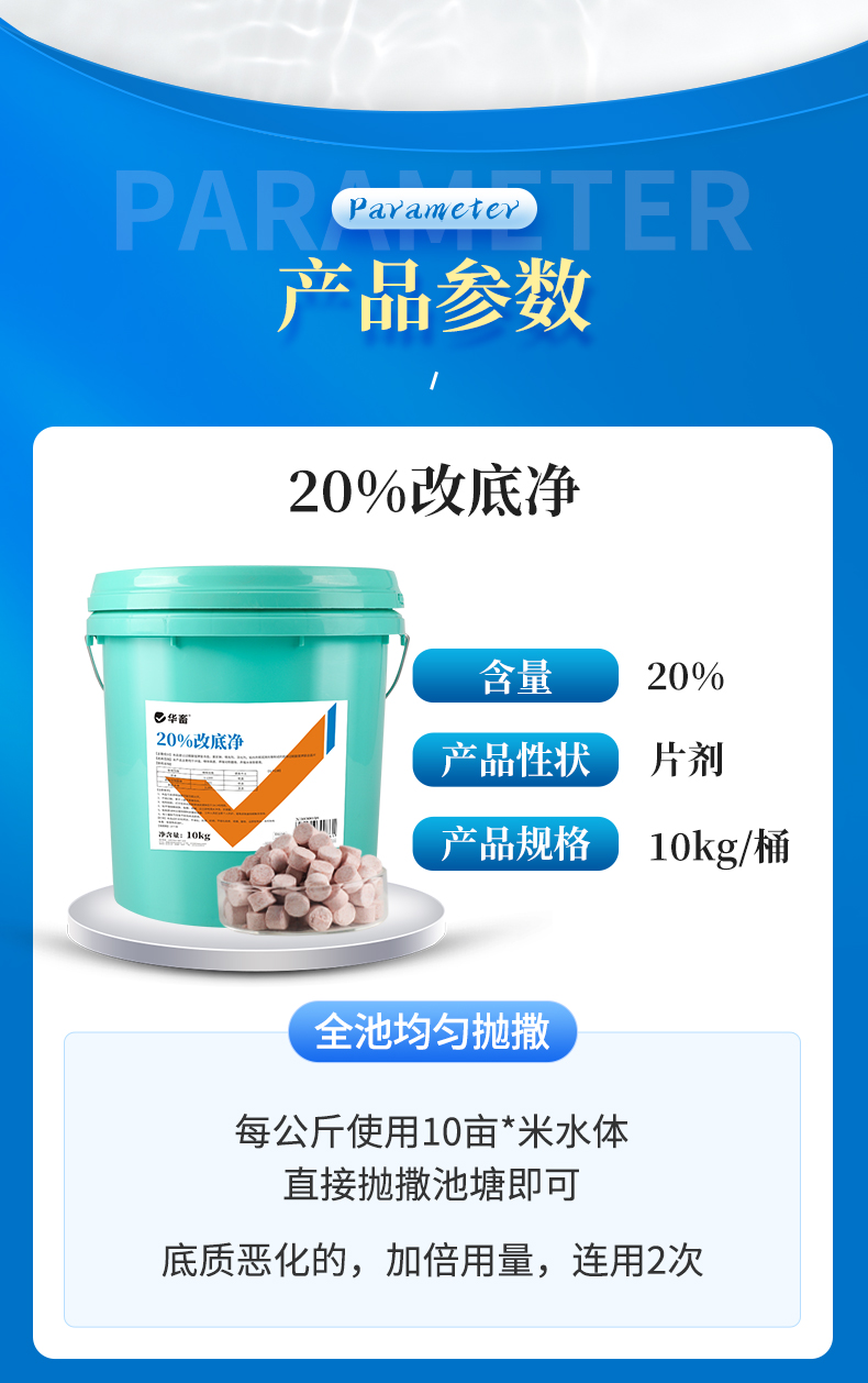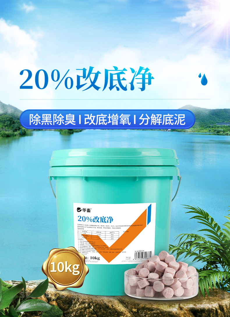 华畜20%改底净10kg 净化水质 改底除臭 氧化有害物质 1桶可用100亩