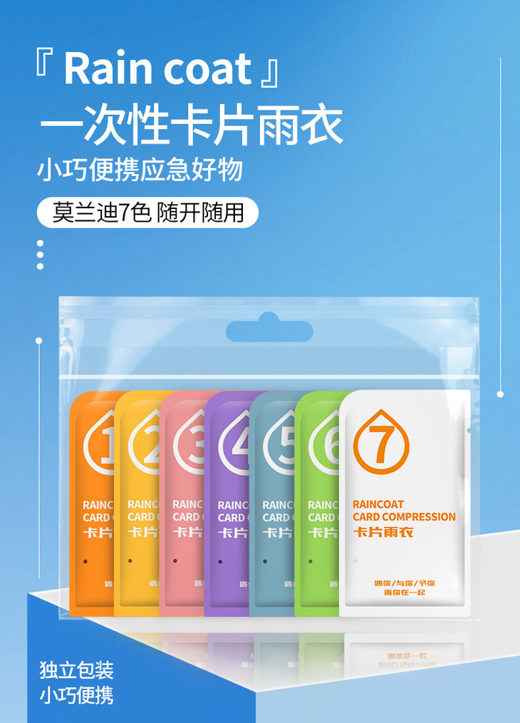 【10件起批!单拍不发】一次性莫兰迪七色卡片雨衣压缩便携式加厚长款户外旅游雨披HLY